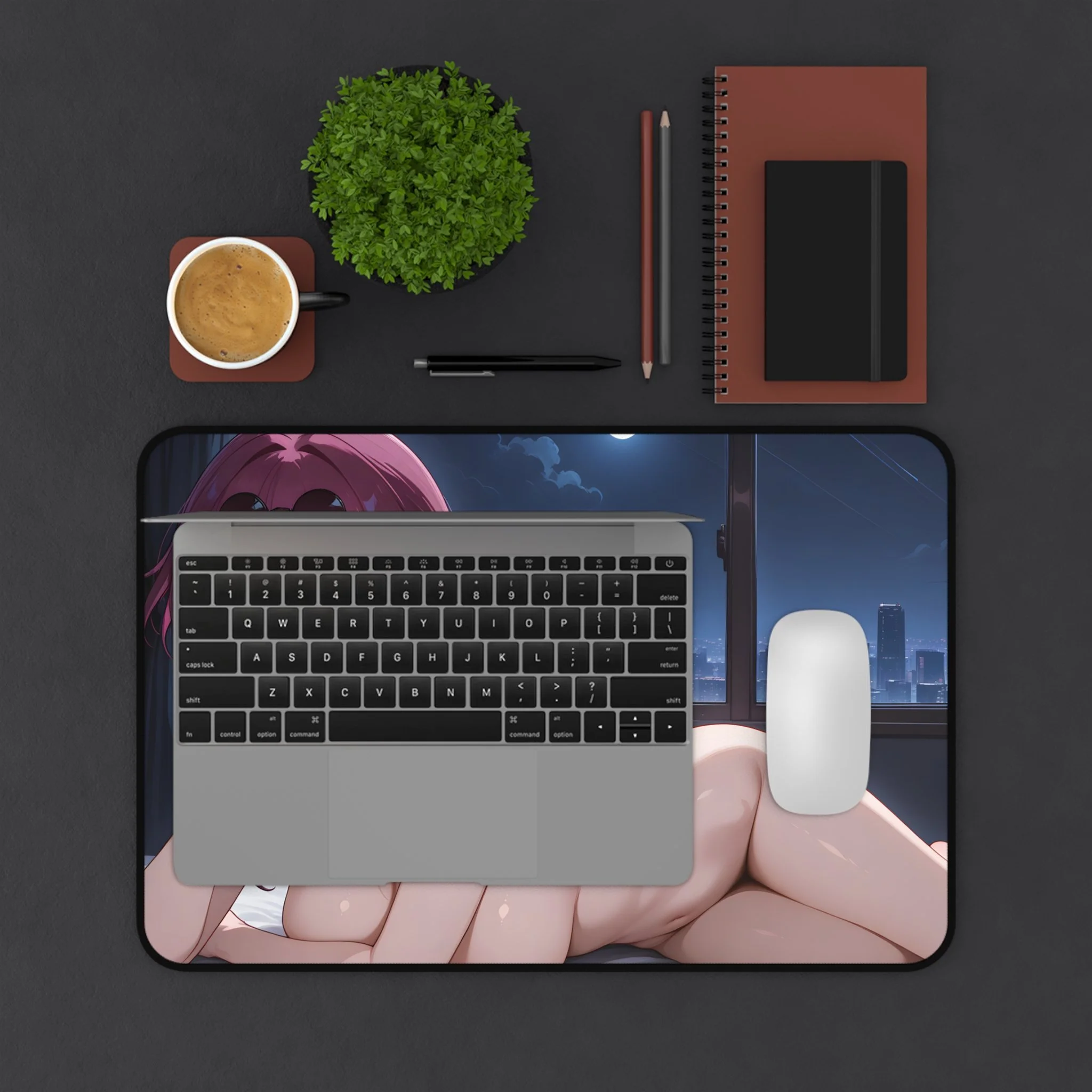 Soft to the touch and built for long sessions at your desk, this neoprene desk mat brings a quiet, intimate mood to your workspace. The print captures a calm, late-night scene — soft moonlight through a window and a relaxed, contemplative figure — creating a small pocket of atmosphere that helps you focus or unwind. Hemmed edges and a textured anti-slip backing keep the mat flat and durable through daily use, while the vibrant print stays crisp with modern printing techniques. Use it as a smooth surface for typing, writing, or crafting; it cushions your wrists and anchors your setup with subtle personality.