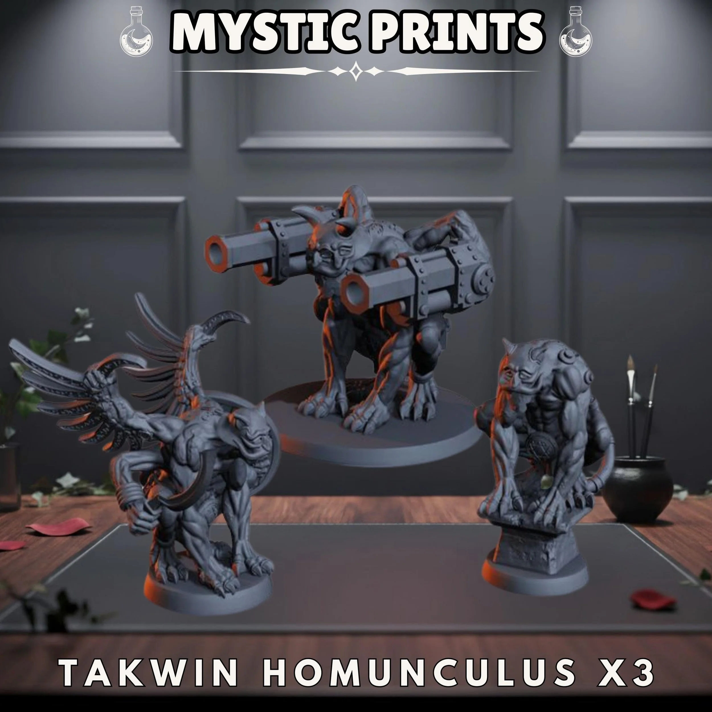 Welcome! Thank you for checking out Mystic Prints! We sell high quality fdm and resin 3D prints as well as custom apparel. Majority of the prints are for Rpgs and Tabletop games such as Dungeons and Dragons and Wargames. We have tons of stl files and can make any apparel that would fit your needs! Design made by Diceverse, License Seller