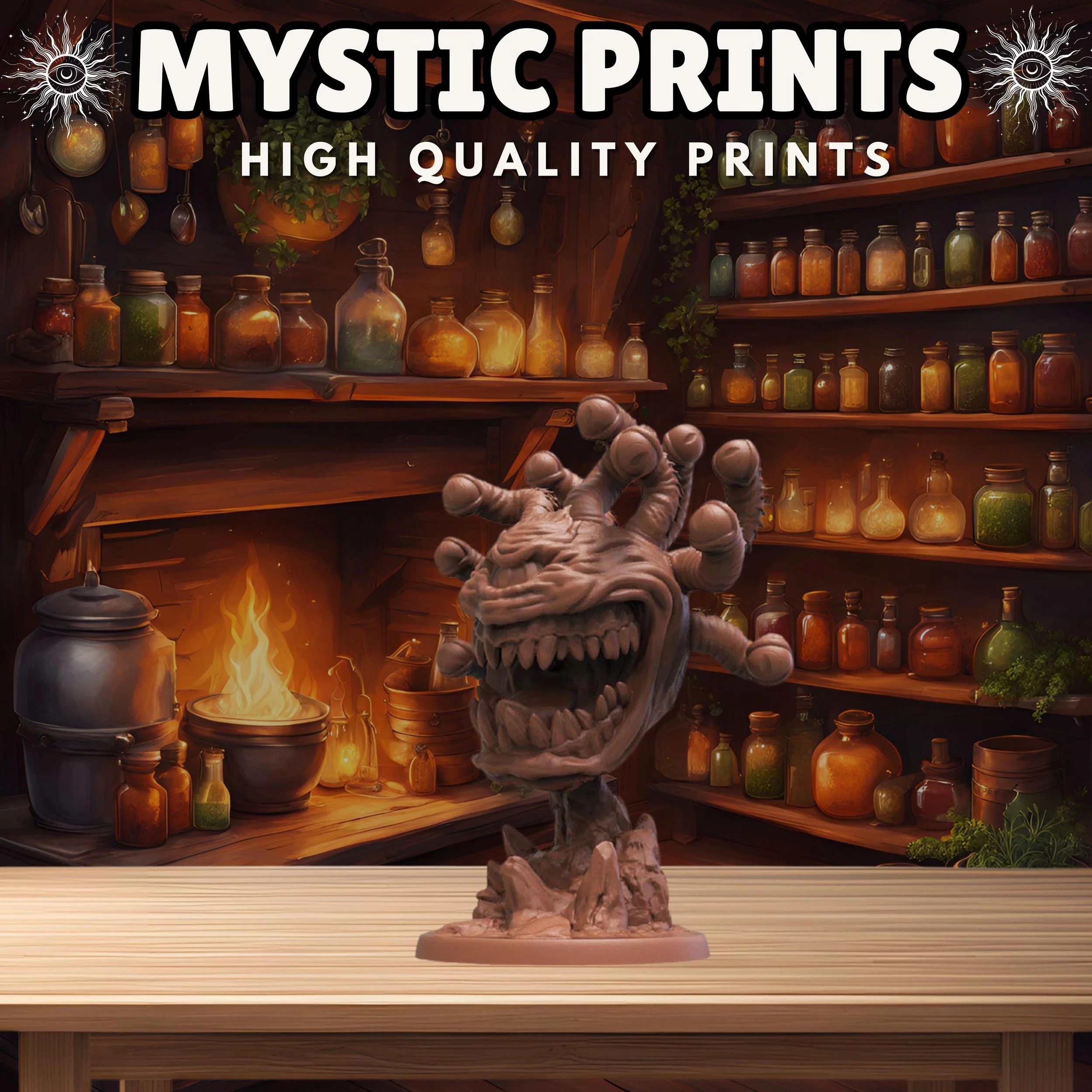 Welcome! Thank you for checking out Mystic Prints! We sell high quality fdm and resin 3D prints as well as custom apparel. Majority of the prints are for Rpgs and Tabletop games such as Dungeons and Dragons and Wargames. We have tons of stl files and can make any apparel that would fit your needs!