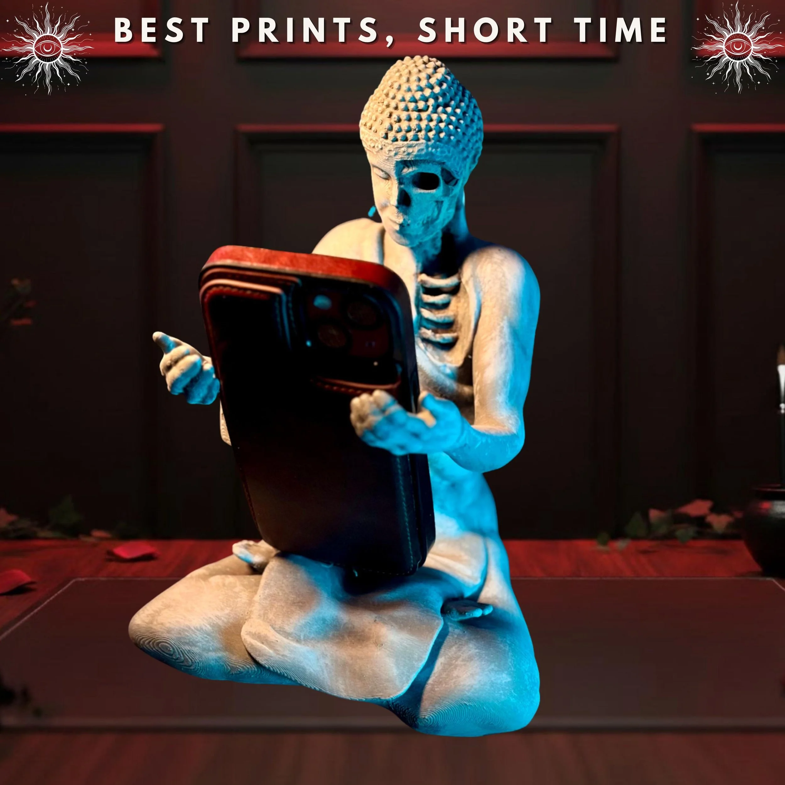 Buddha Phone Holder | Gothic Zen Decor | Macabre Desk Accessory | 3D Printed