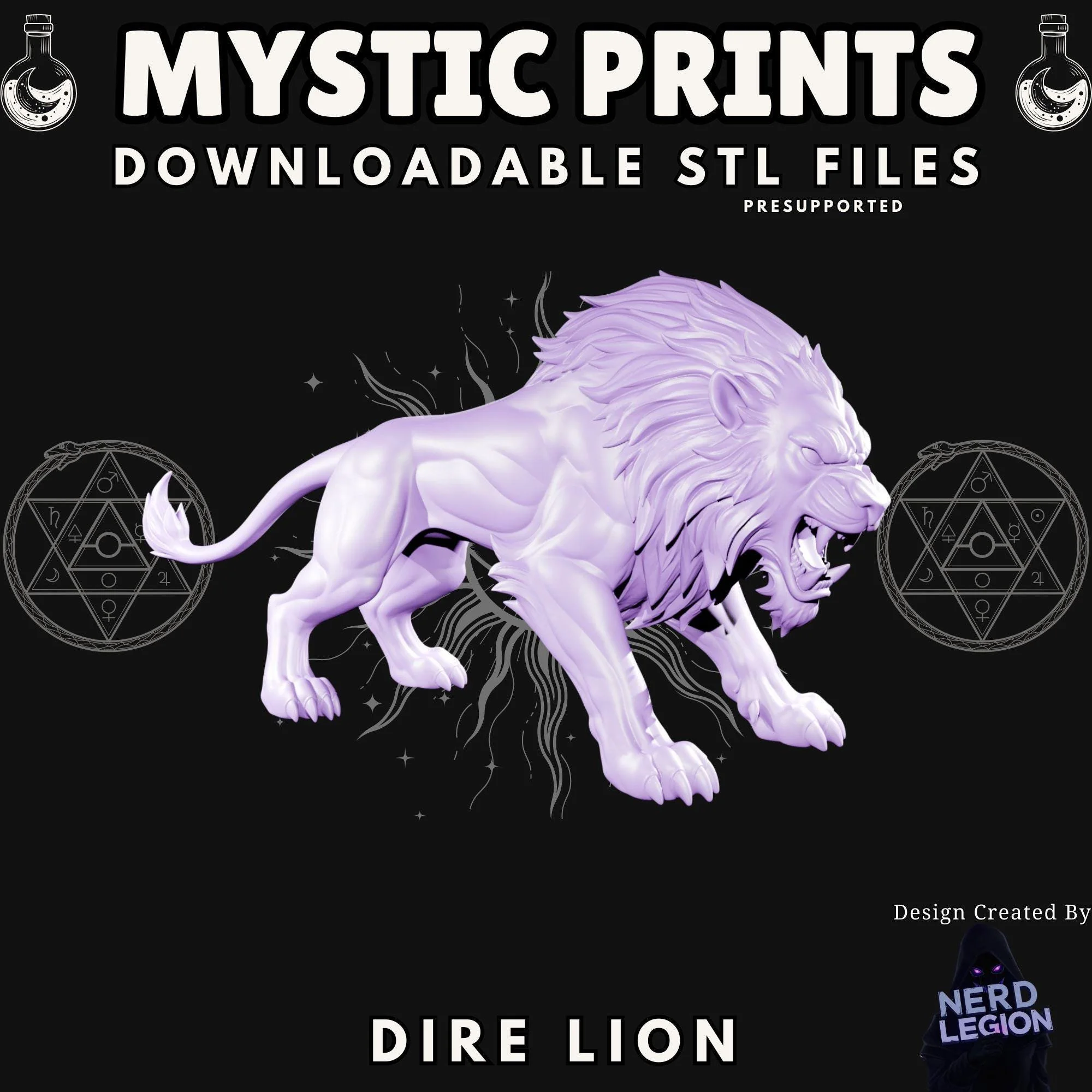 Dire Lion Miniature STL | Dungeons and Dragons Beast | RPG | Nerd Legion