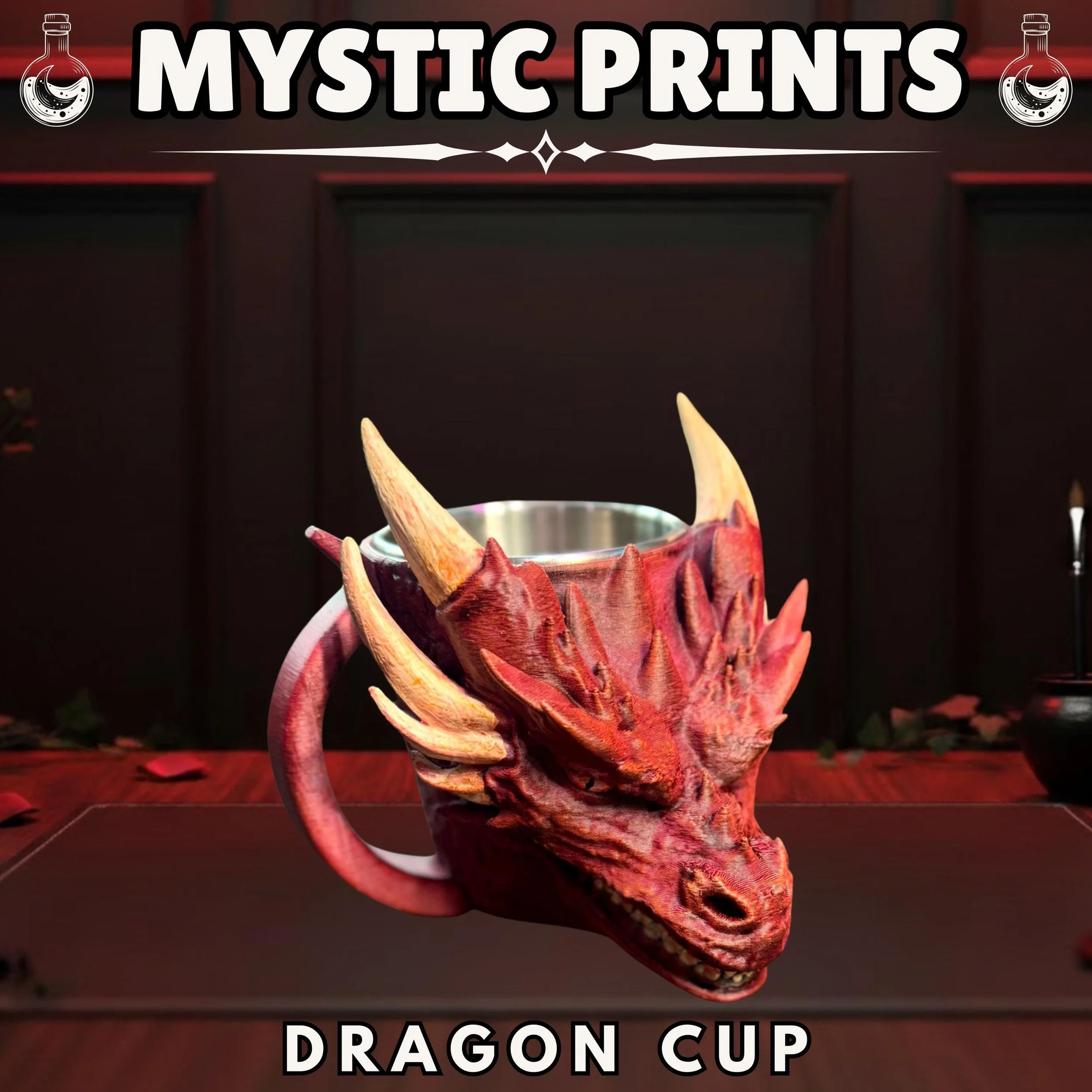 Inspired by legendary fire-breathers, this cup features a highly detailed dragon head with sweeping horns and a realistic scales texture. Whether you are hosting a D&D night, decorating your gaming room, or looking for a unique medieval gift, this dragon mug brings a touch of magic to your table. The striking red finish and metallic-style interior insert provide a premium, rugged look that fits perfectly in a tavern or a modern home.