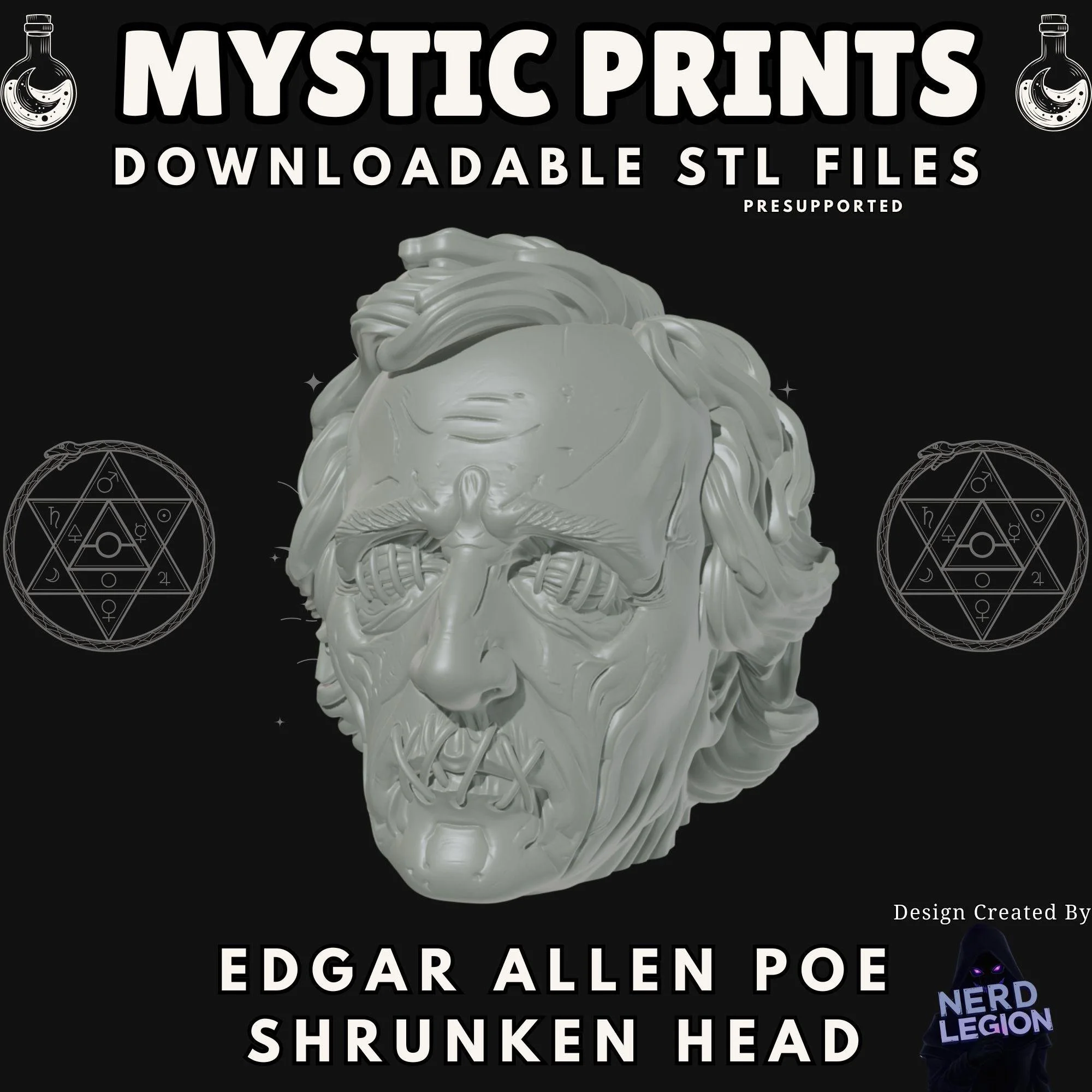 Edgar Allan Poe Shrunken Head STL | Gothic Horror Prop | Nerd Legion