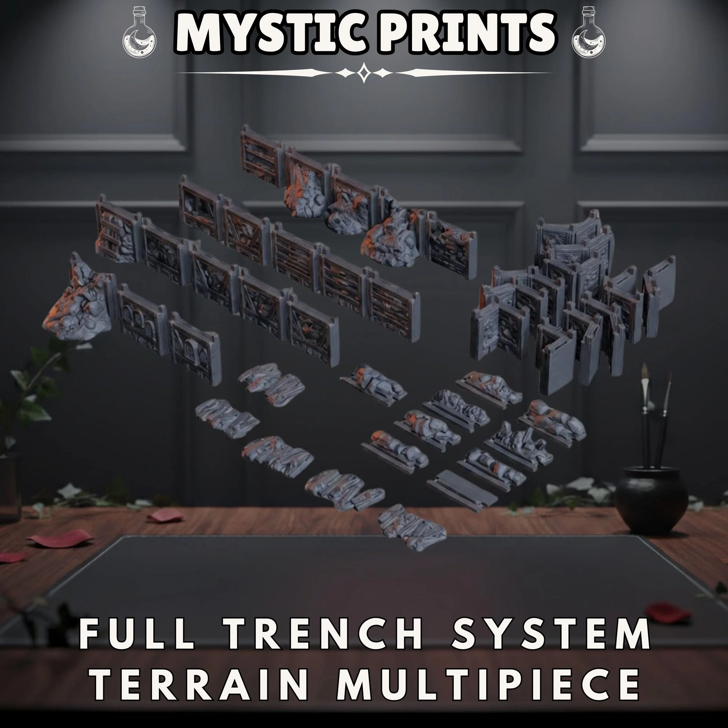 Full Trench System Terrain - Grimdark Heretic Trench Compatible - 3D Printed