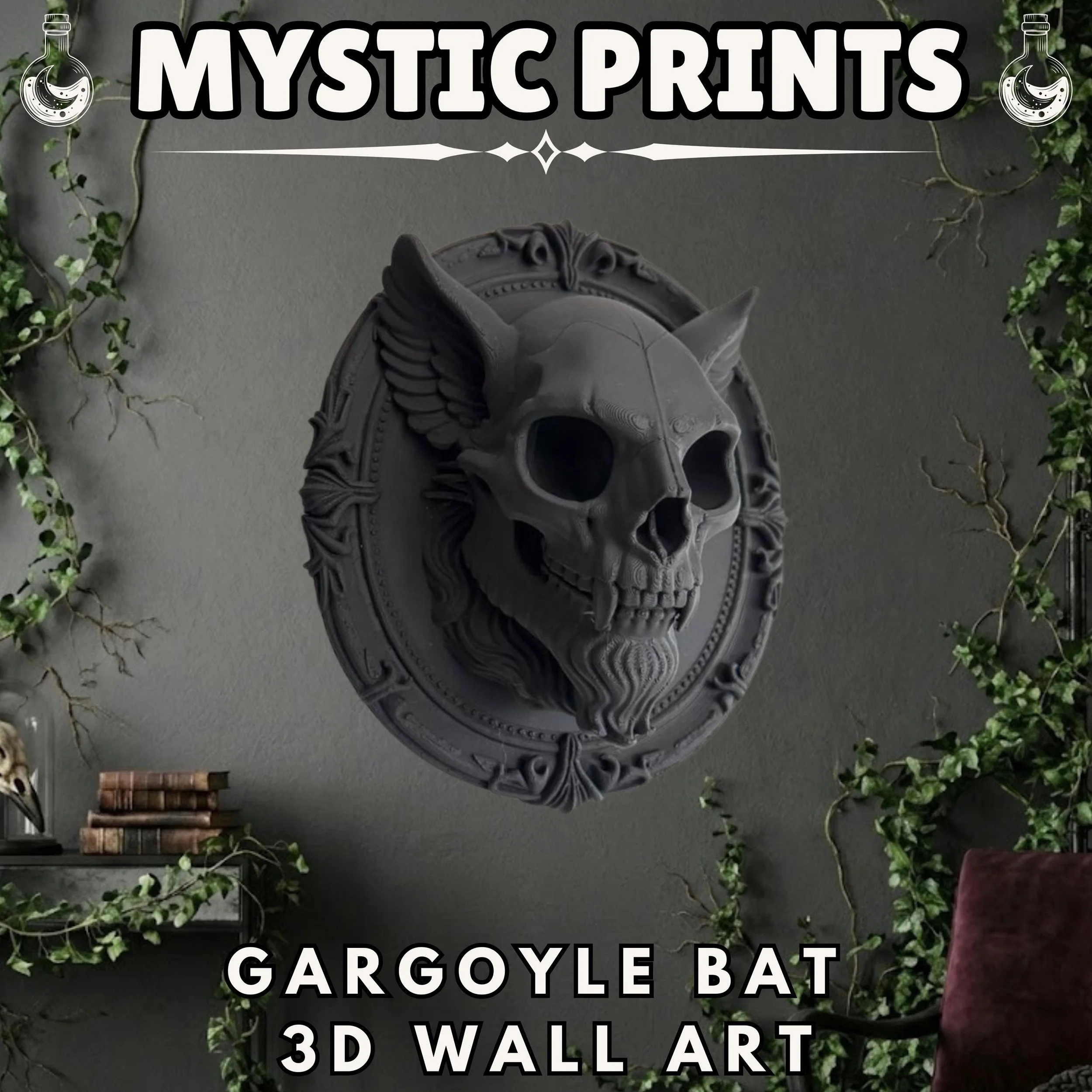 Gargoyle Bat Skull Wall Art | Gothic Horror Decor | Vampire Plaque | Akshan Design