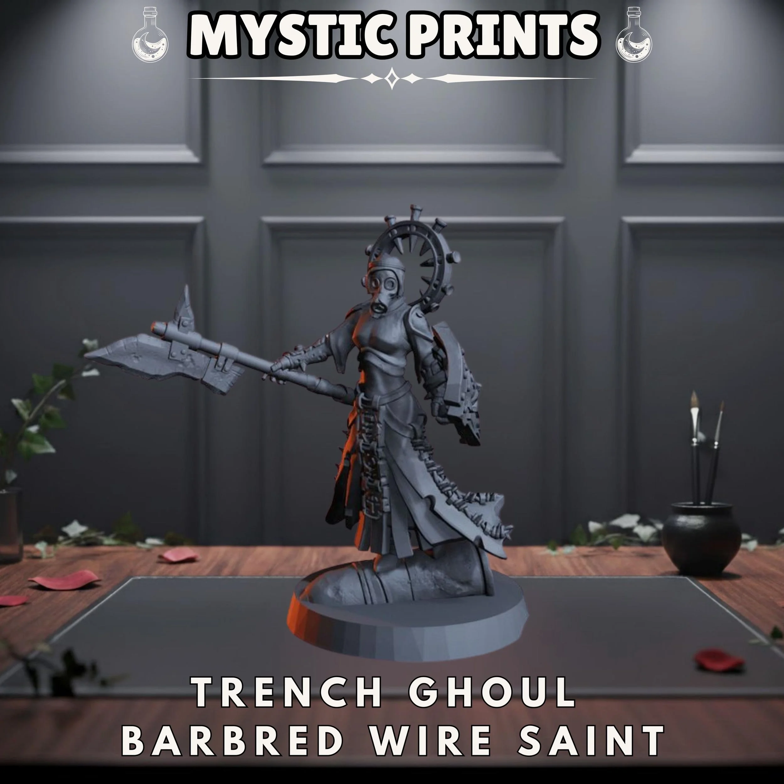 Gravefront Ghoul Barbed Wire Saint - Grimdark Heretic Trench Compatible - Base Included - Resin 3D Printed