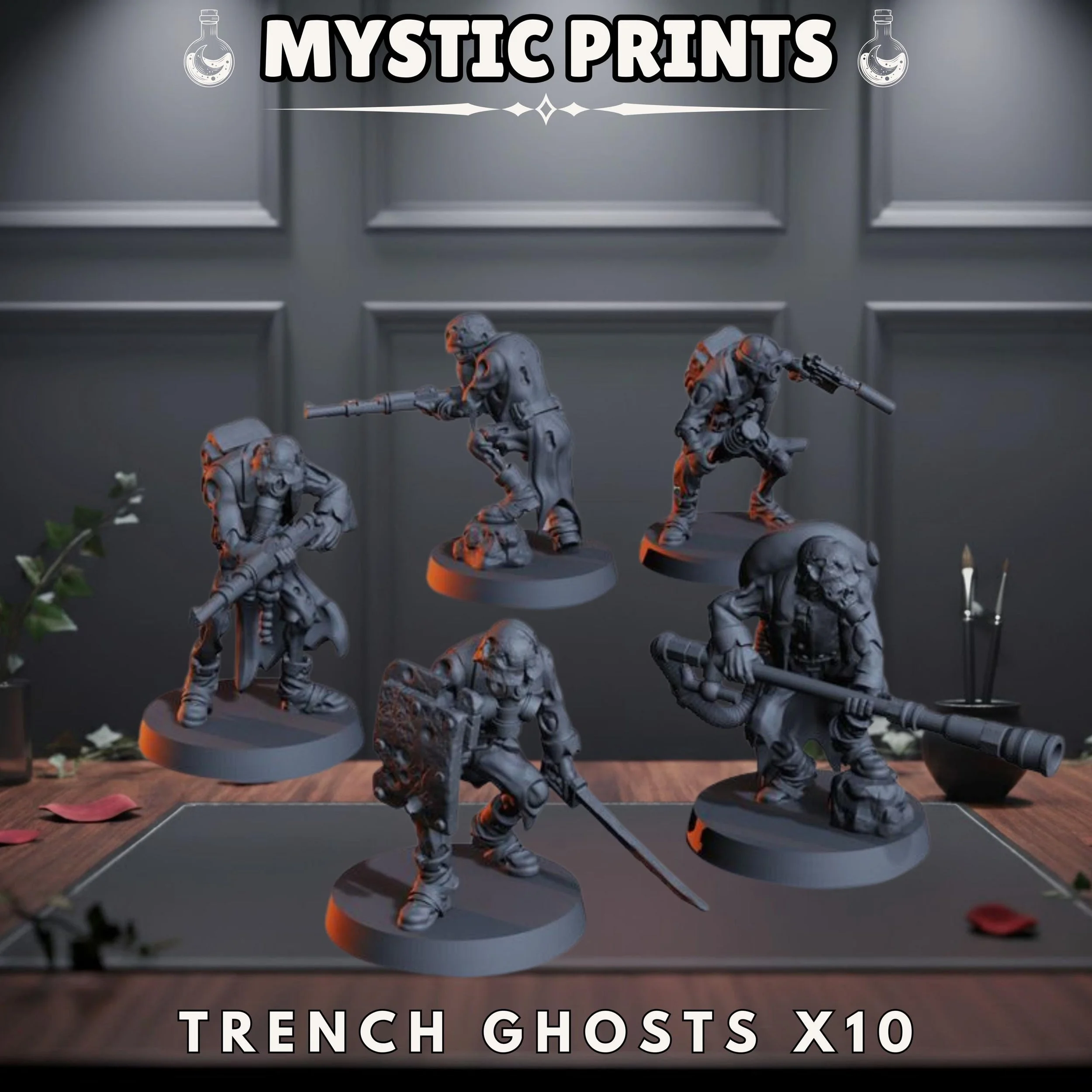 Gravefront Ghouls x10 - Grimdark Heretic Trench Compatible - Base Included - Resin 3D Printed