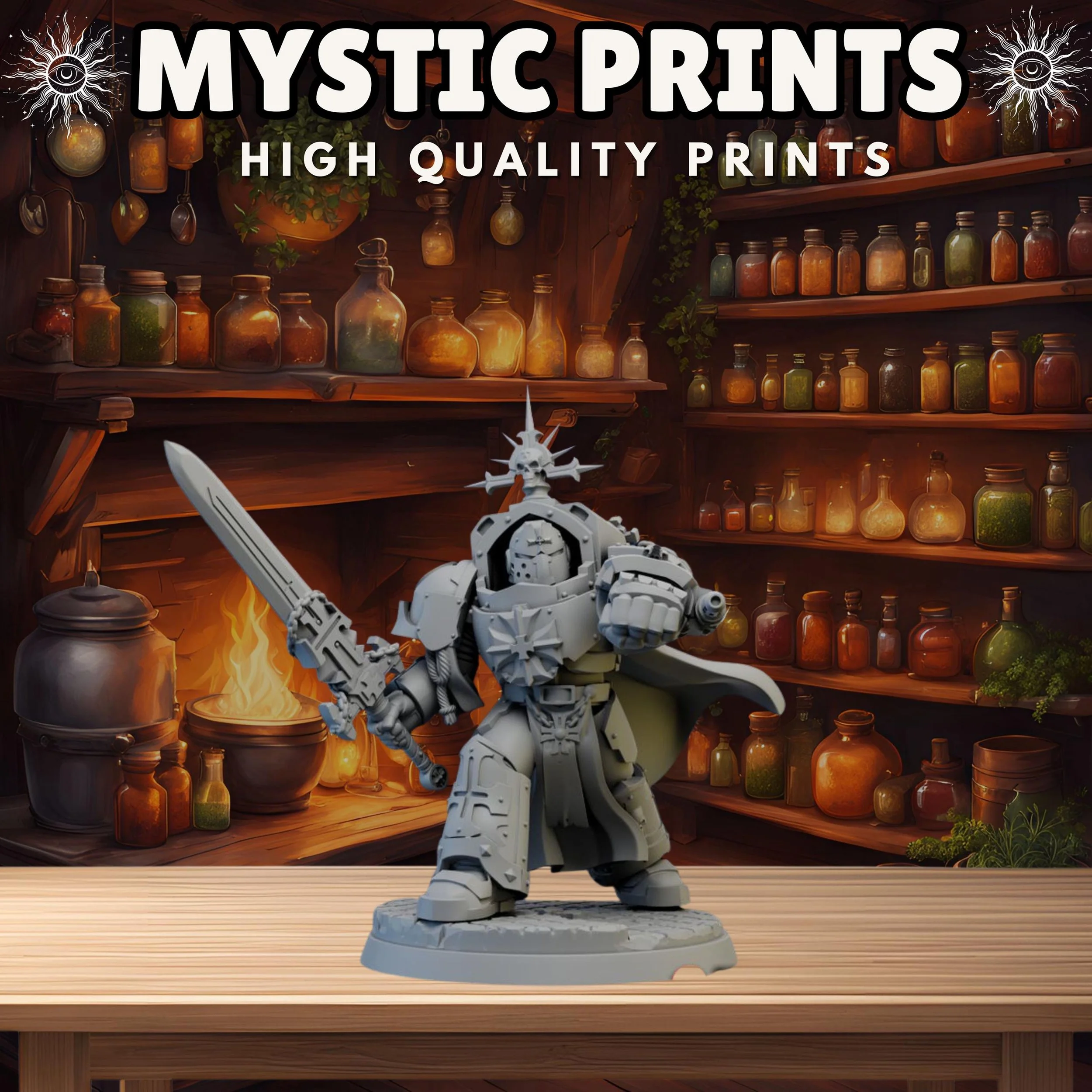 Welcome! Thank you for checking out Mystic Prints! We sell high quality fdm and resin 3D prints as well as custom apparel. Majority of the prints are for Rpgs and Tabletop games such as Dungeons and Dragons and Wargames. We have tons of stl files and can make any apparel that would fit your needs!