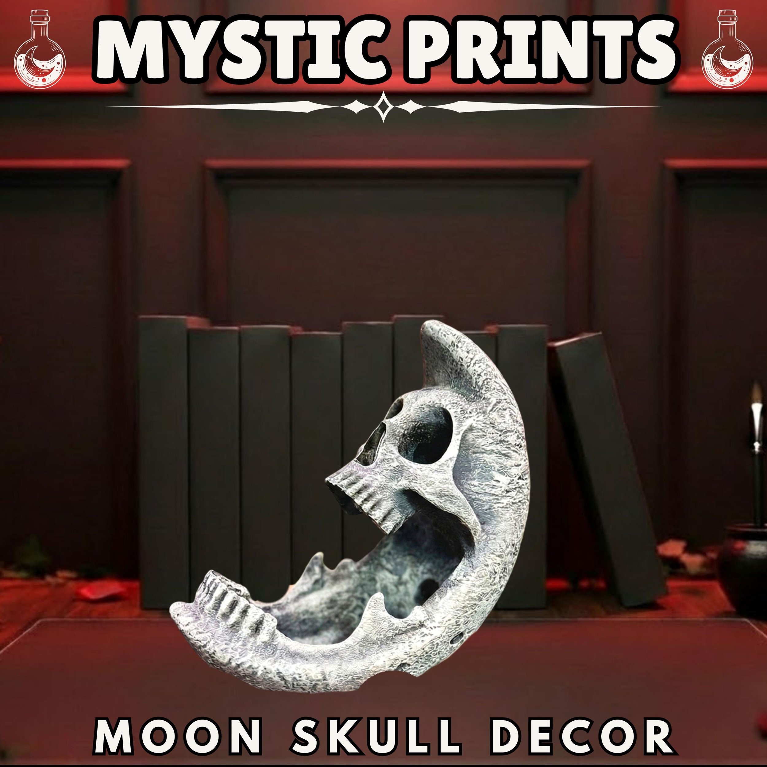 Moon Skull Decor | Celestial Gothic Altar | Witchy Bookshelf Art | 3D Printed