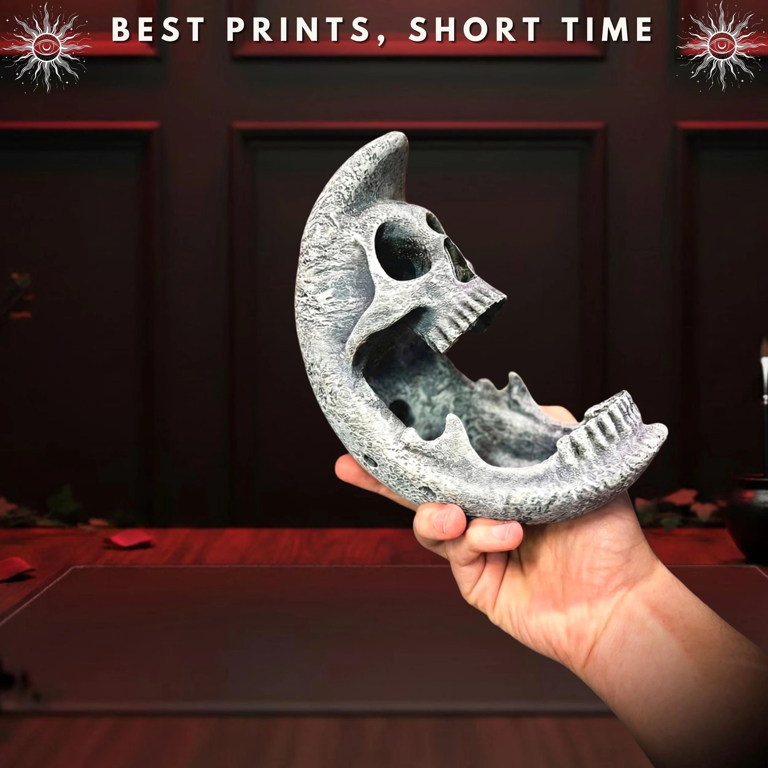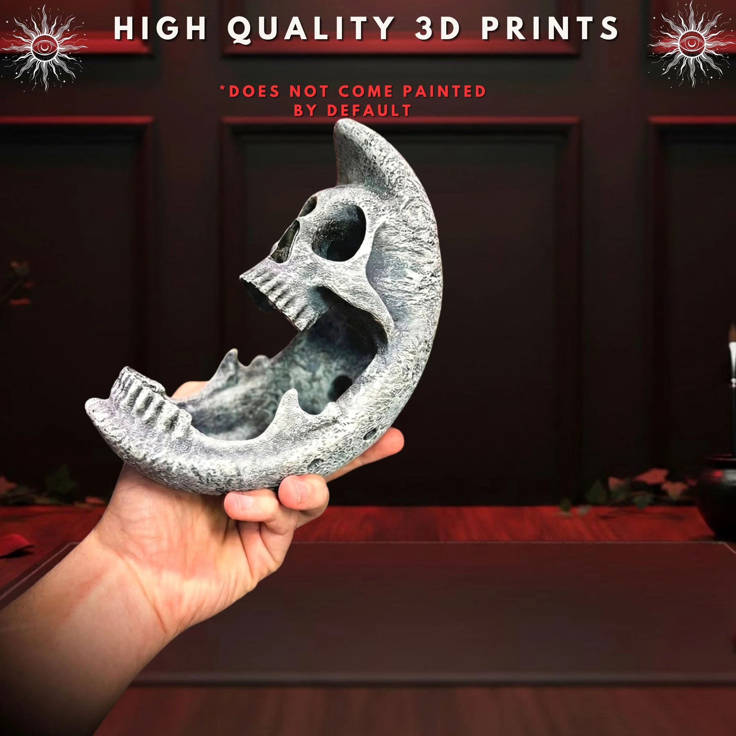 Bring the mystery of the night sky into your home with this striking Moon Skull Decor. Designed by the Hooper Family, this 3D-printed sculpture is a hauntingly beautiful fusion of celestial wonder and gothic macabre, making it a standout addition to any dark academia or witchy collection.