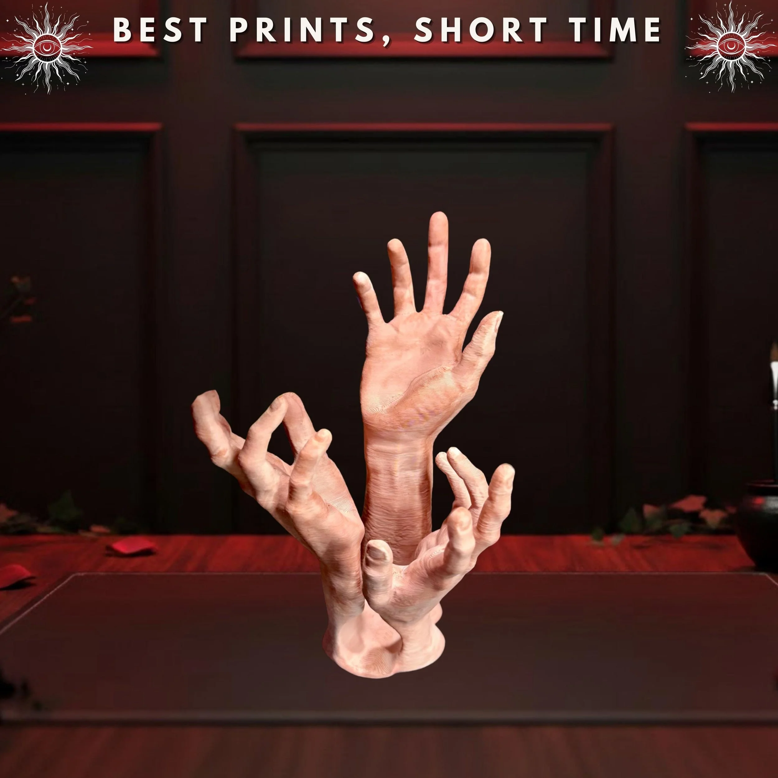 This piece is a must-have for Dungeon Masters and players who love a dark academia or gothic horror aesthetic. The intricate textures of the skin and reaching fingers make it look like a relic pulled straight from a mystic's study. When not in use, it serves as a stunning piece of shelf decor that captures the attention of anyone who enters your gaming room.