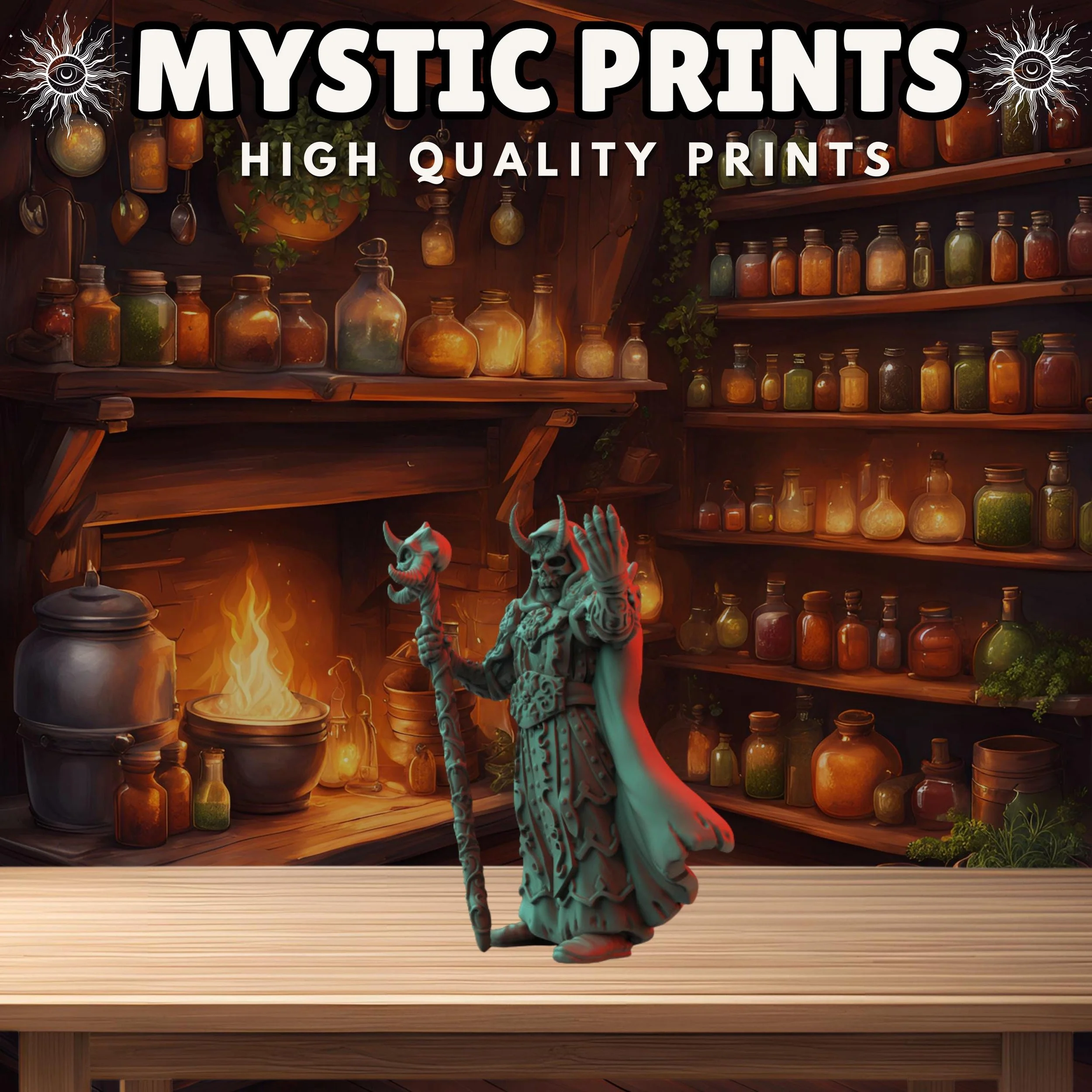 Welcome! Thank you for checking out Mystic Prints! We sell high quality fdm and resin 3D prints as well as custom apparel. Majority of the prints are for Rpgs and Tabletop games such as Dungeons and Dragons and Wargames. We have tons of stl files and can make any apparel that would fit your needs!