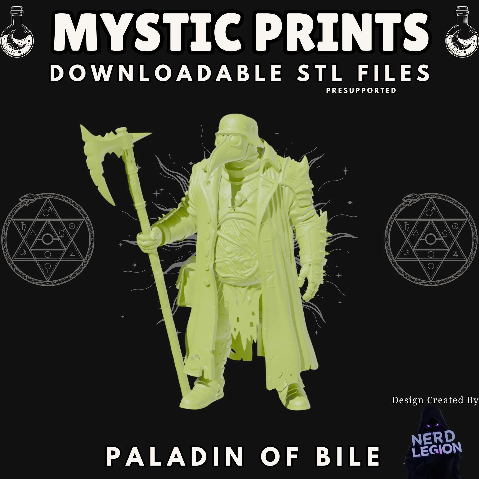 Enter the fray with the Paladin of Bile, a highly detailed digital STL file designed by Nerd Legion. This grimdark holy warrior is a terrifying addition to any tabletop battlefield, blending the aesthetics of a medieval executioner with the industrial horror of trench warfare. Clad in heavy, spiked armor and donning an iconic plague doctor mask, this Paladin serves as a brutal enforcer of decay and divine rot.