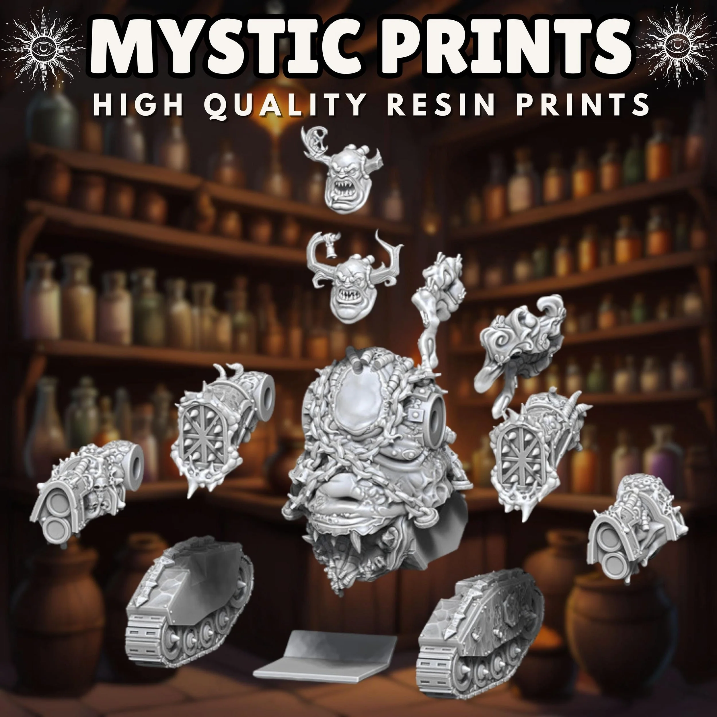 Welcome! Thank you for checking out Mystic Prints! We sell high quality fdm and resin 3D prints as well as custom apparel. Majority of the prints are for Rpgs and Tabletop games such as Dungeons and Dragons and Wargames. We have tons of stl files and can make any apparel that would fit your needs!