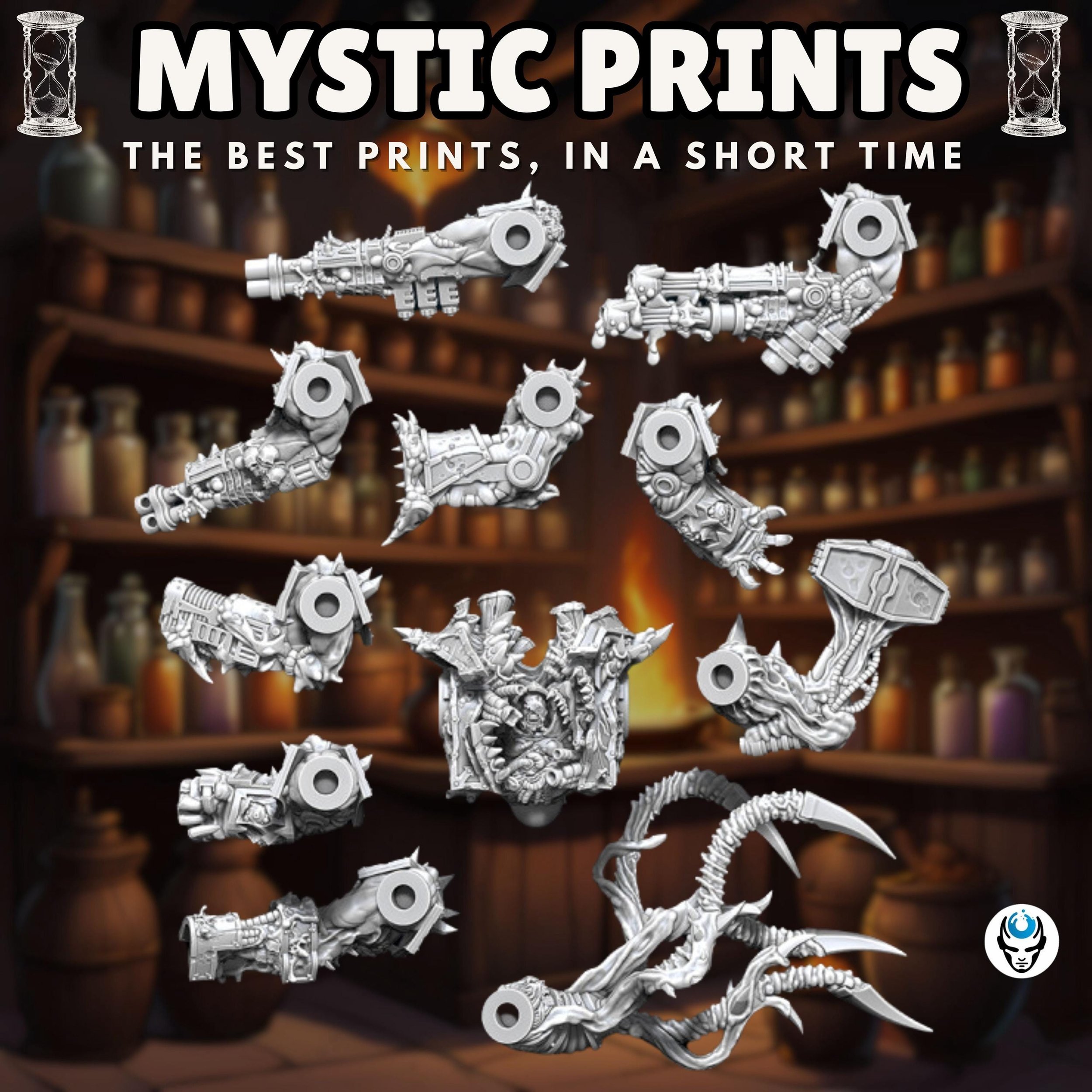 Welcome! Thank you for checking out Mystic Prints! We sell high quality fdm and resin 3D prints as well as custom apparel. Majority of the prints are for Rpgs and Tabletop games such as Dungeons and Dragons and Wargames. We have tons of stl files and can make any apparel that would fit your needs!