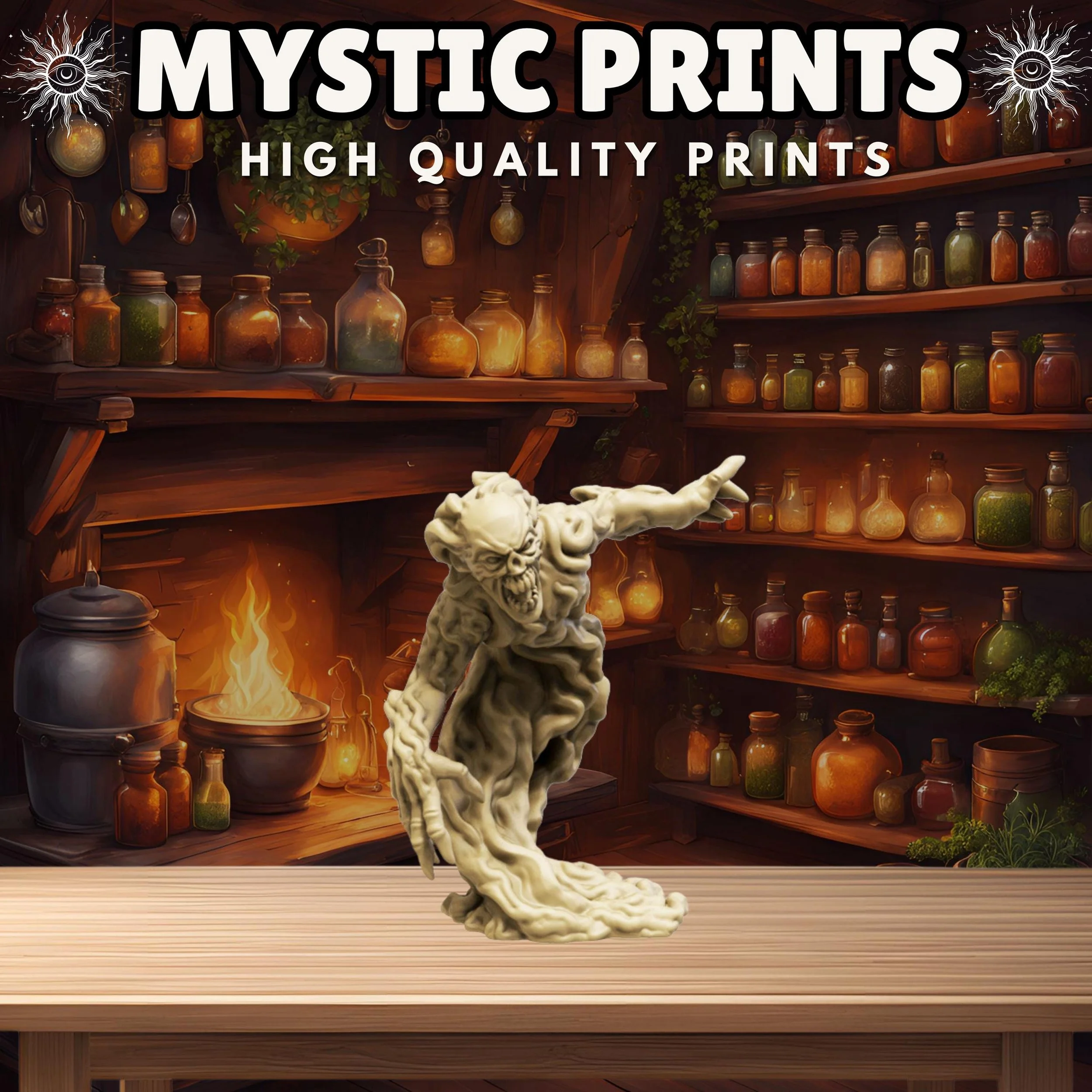 Welcome! Thank you for checking out Mystic Prints! We sell high quality fdm and resin 3D prints as well as custom apparel. Majority of the prints are for Rpgs and Tabletop games such as Dungeons and Dragons and Wargames. We have tons of stl files and can make any apparel that would fit your needs!