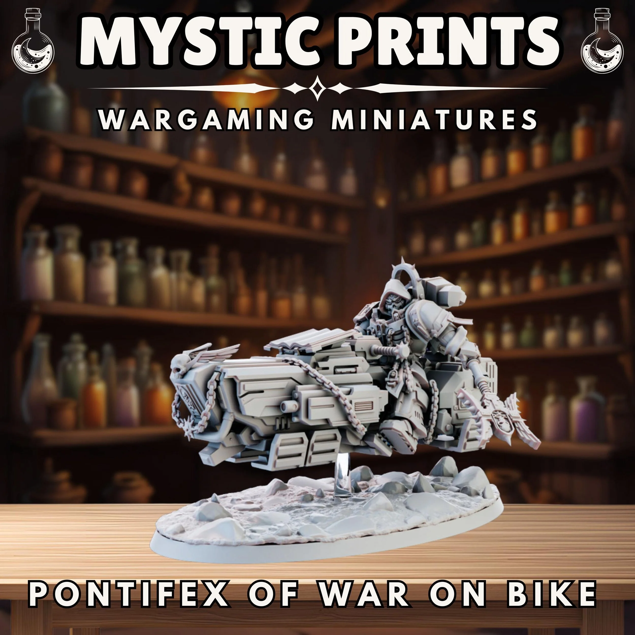Pontifex on Grav Bike - 3D Printed Resin Mini - Base Included Sized Appropriate