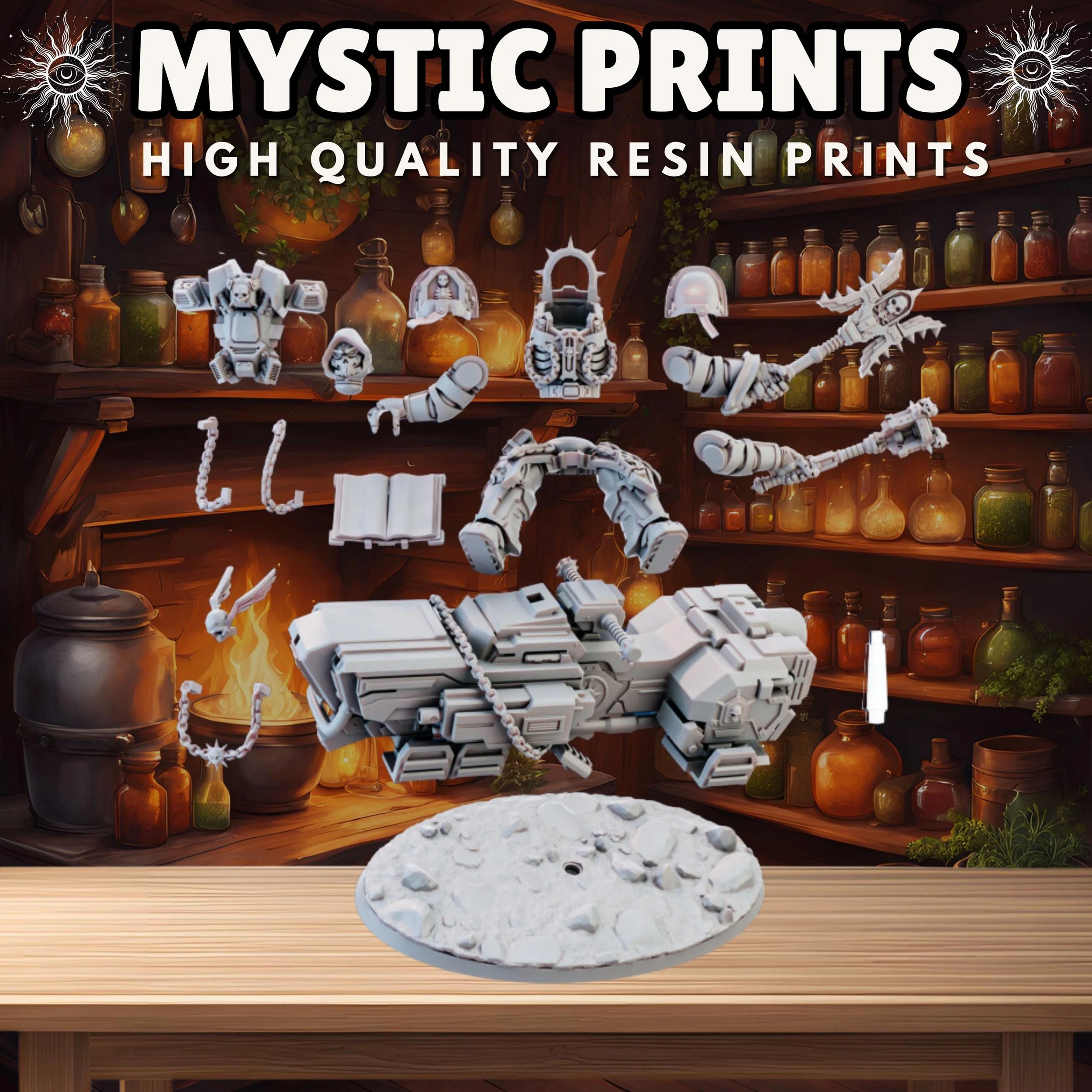 Welcome! Thank you for checking out Mystic Prints! We sell high quality fdm and resin 3D prints as well as custom apparel. Majority of the prints are for Rpgs and Tabletop games such as Dungeons and Dragons and Wargames. We have tons of stl files and can make any apparel that would fit your needs!