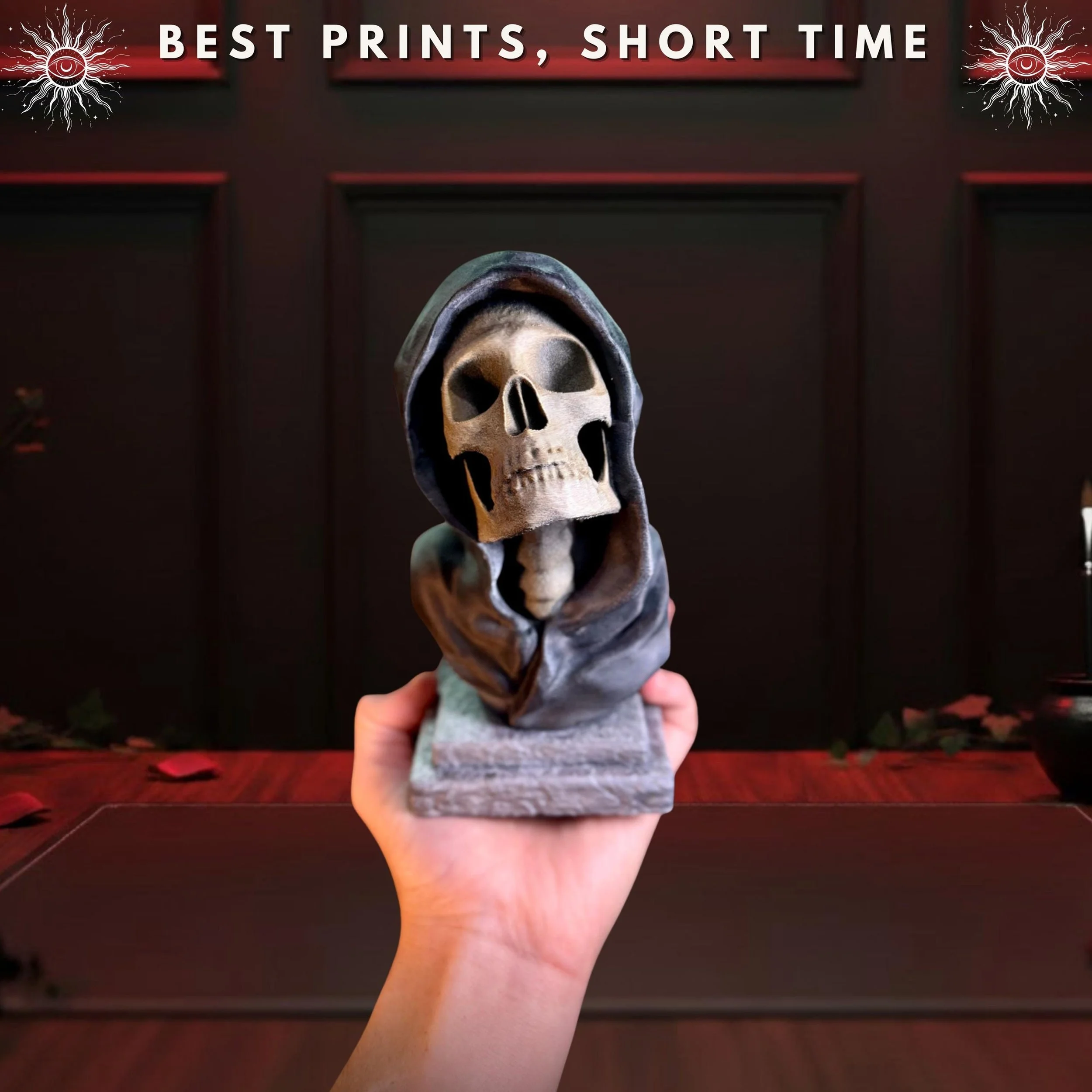 Invite the keeper of the veil to watch over your literary collection with this striking Reaper Booknook. Designed by the Hooper Family, this 3D-printed masterpiece is the ultimate statement for collectors of the macabre, dark academia enthusiasts, and fans of gothic literature.