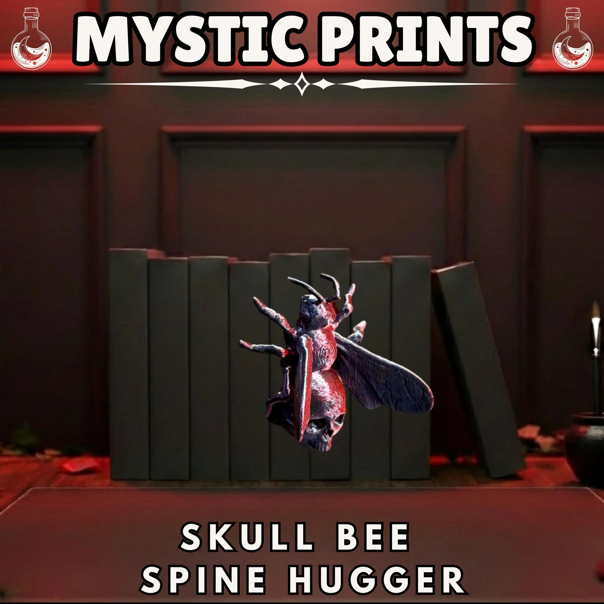Transform your library into a cabinet of curiosities with this hauntingly beautiful Skull Bee Spine Hugger. Designed by The Hooper Family, this unique piece of 3D-printed art is the ultimate statement for any dark academia enthusiast or collector of the macabre.