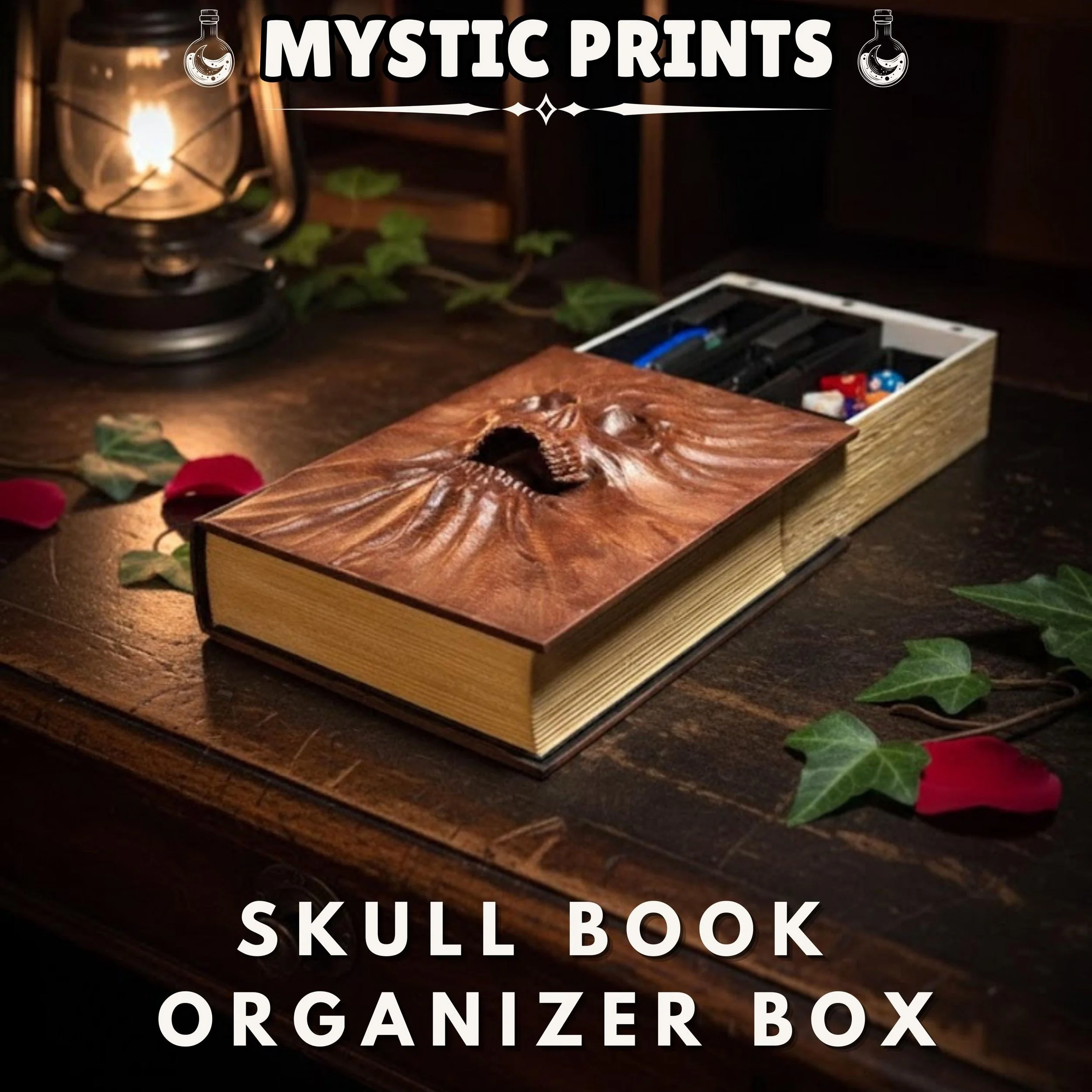 Skull Book Storage Box - Gothic Secret Stash Case - 3D Printed