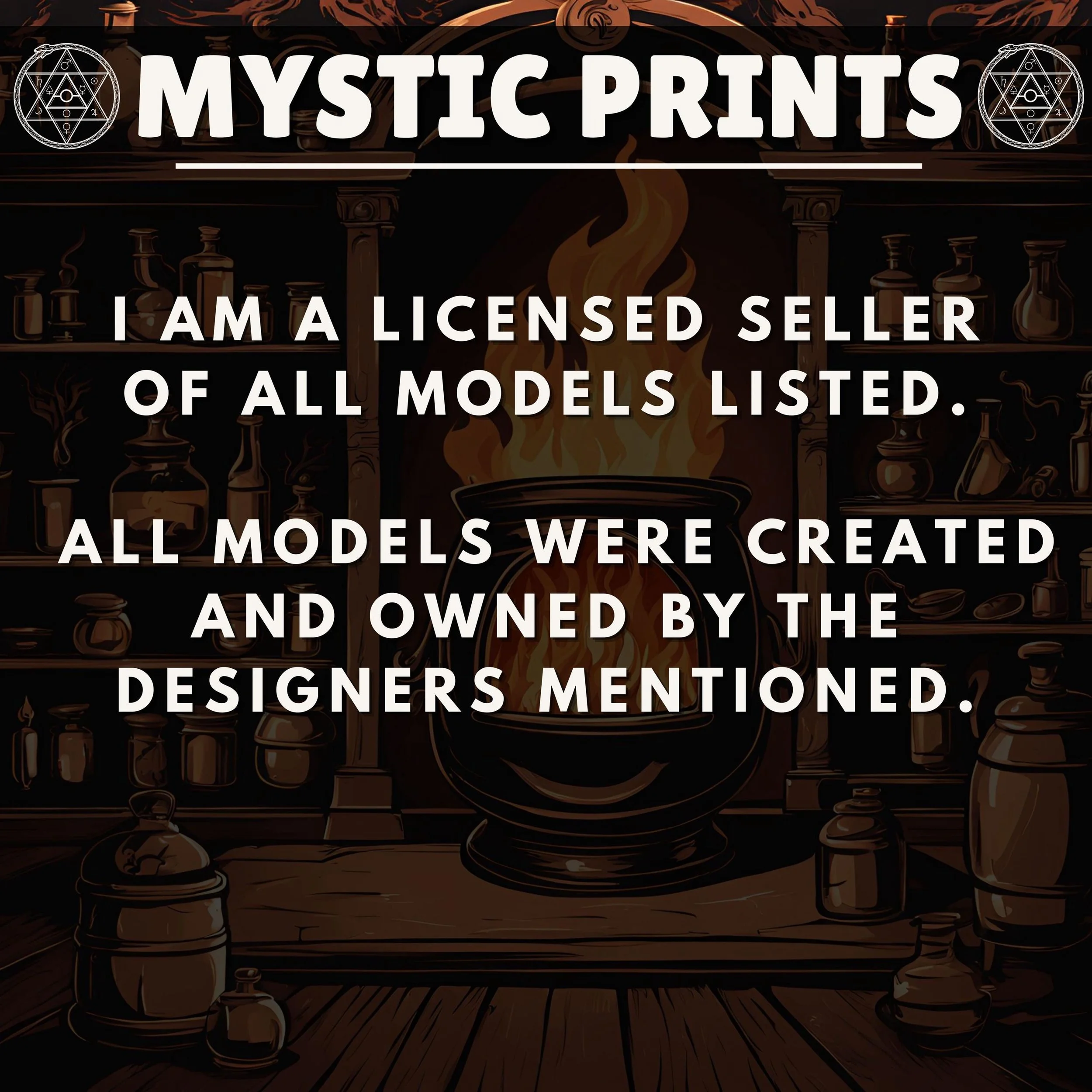 Welcome! Thank you for checking out Mystic Prints! We sell high quality fdm and resin 3D prints as well as custom apparel. Please be sure to use the personalization section to make sure we include any weapons, gear and other options you may desire.