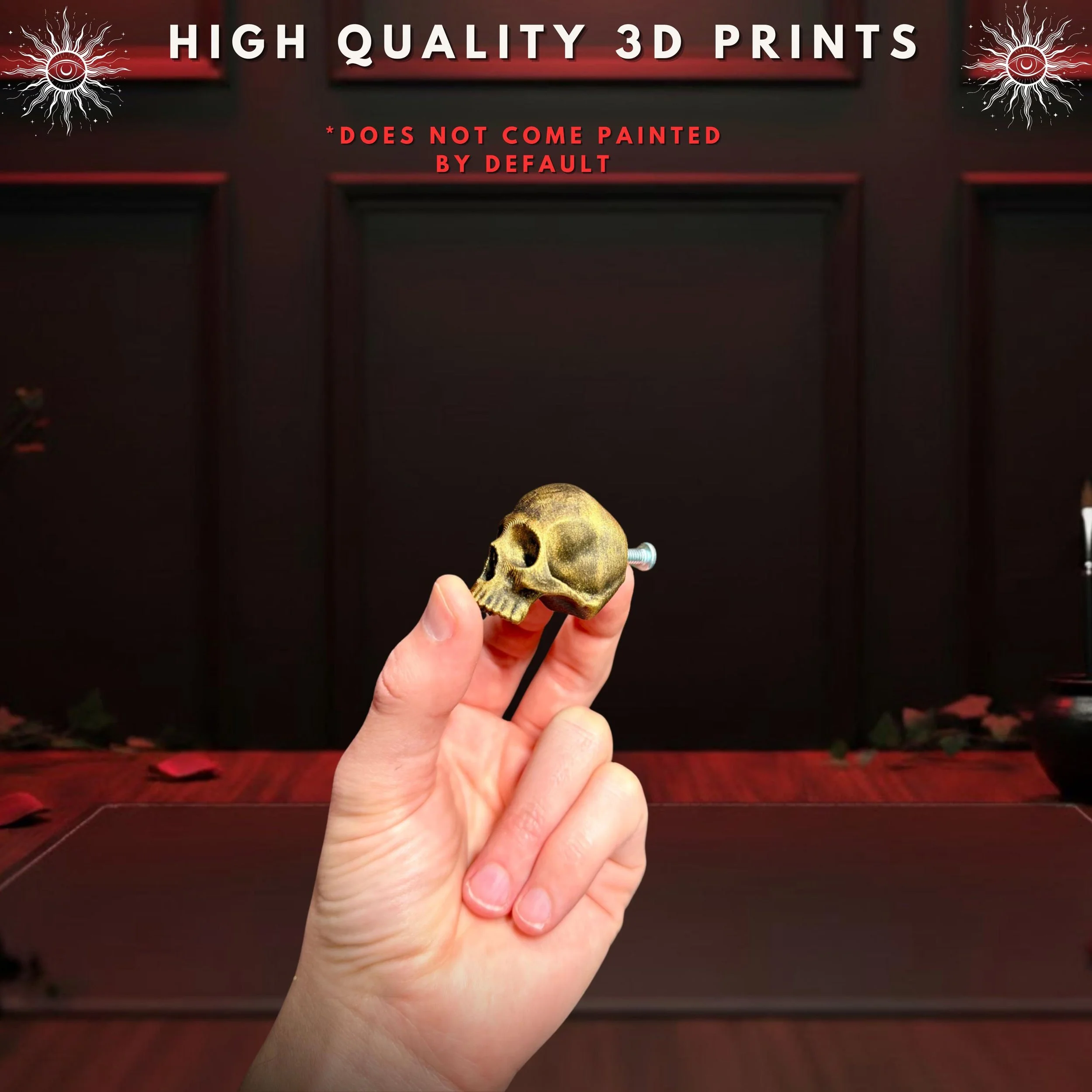 Give your home a hauntingly beautiful upgrade with this hyper-realistic Skull Cabinet and Drawer Pull. Designed by the Hooper Family, this 3D-printed piece is the ultimate statement for any gothic kitchen, witchy bedroom, or dark academia study.