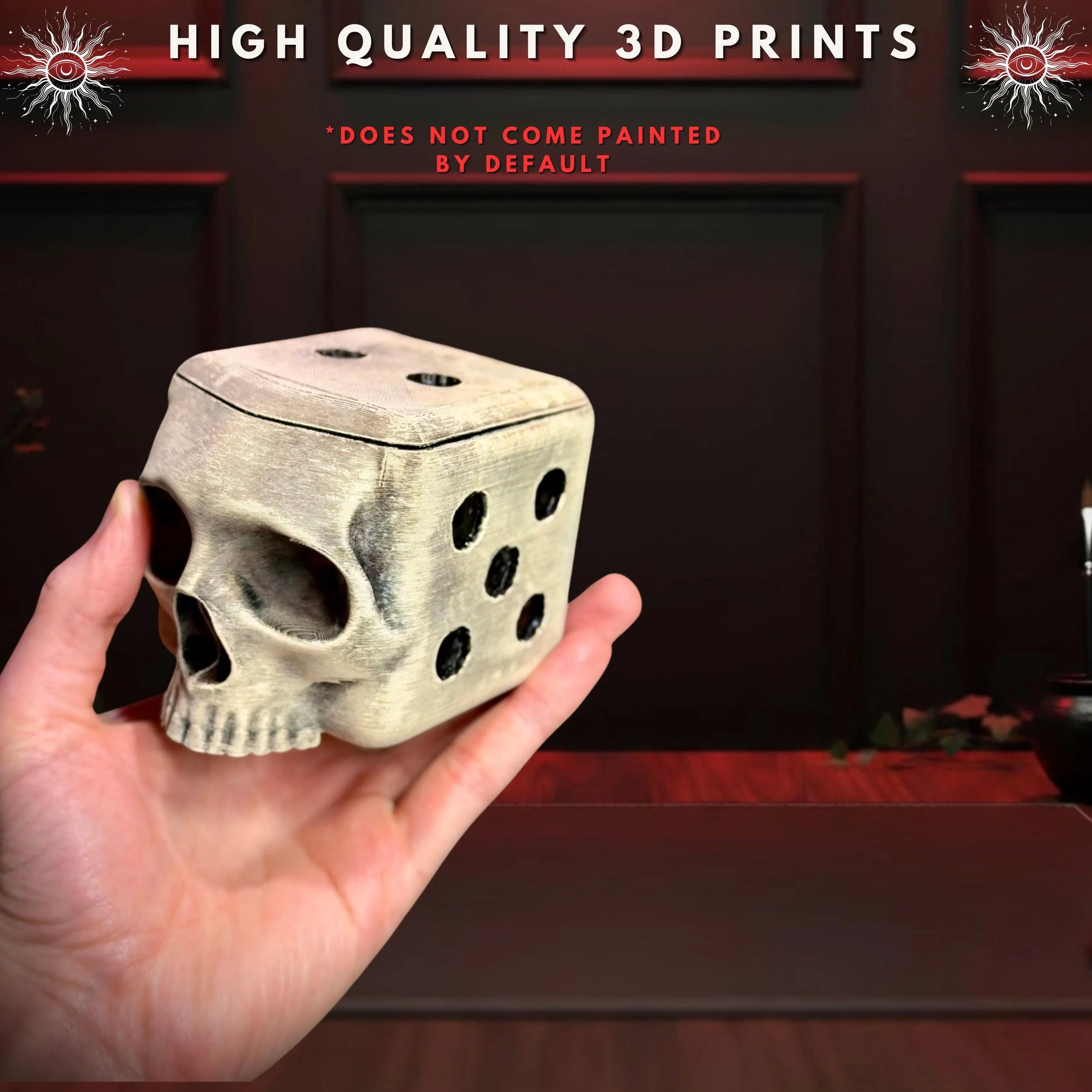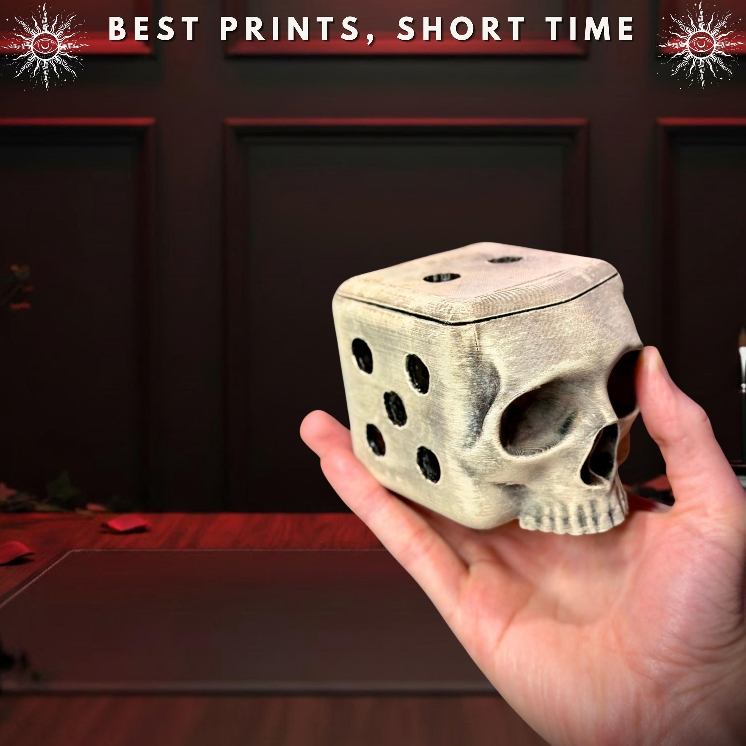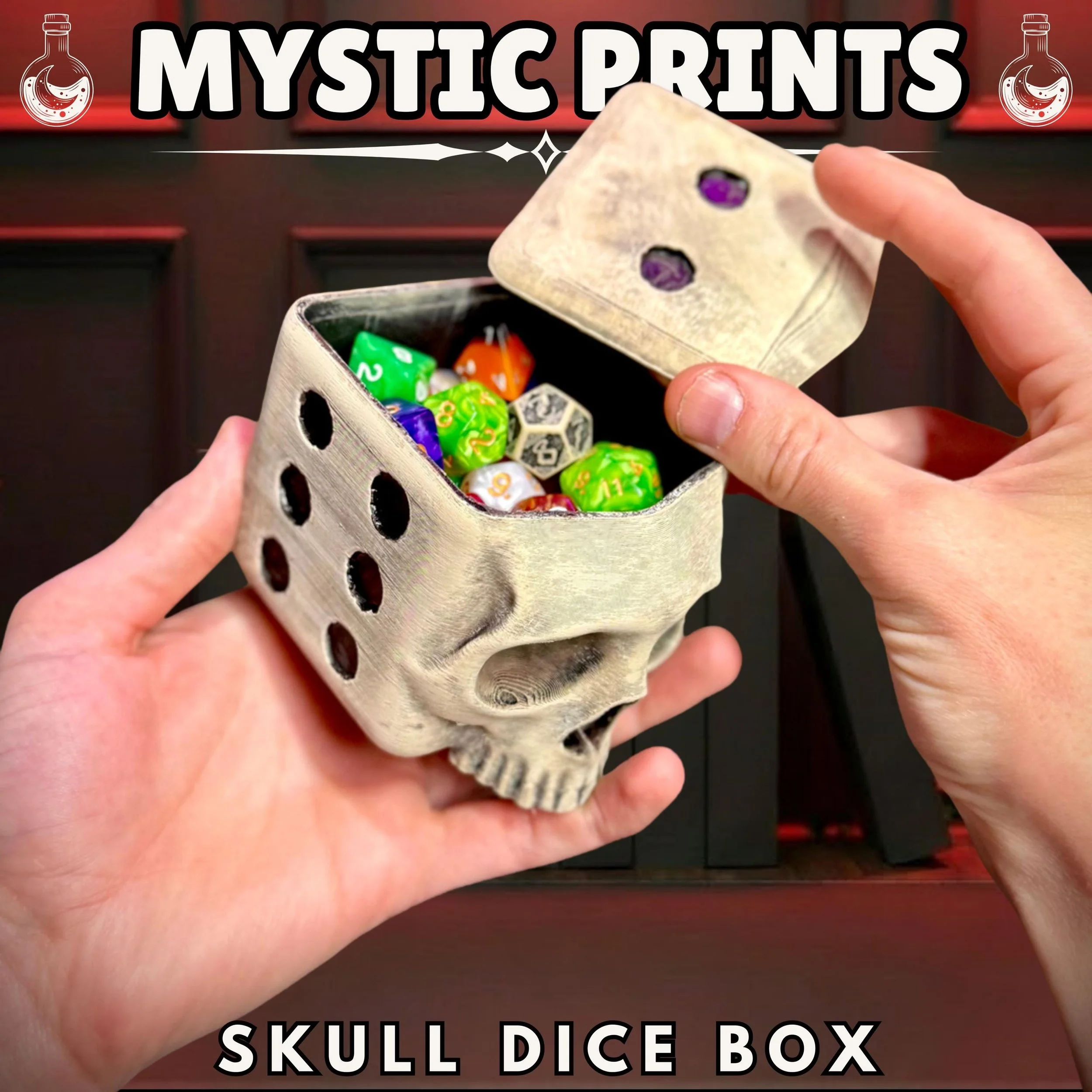 Level up your gaming table with the hauntingly unique Skull Dice Box. Designed by the Hooper Family, this 3D-printed storage solution is the ultimate fusion of gothic horror and tabletop RPG culture.