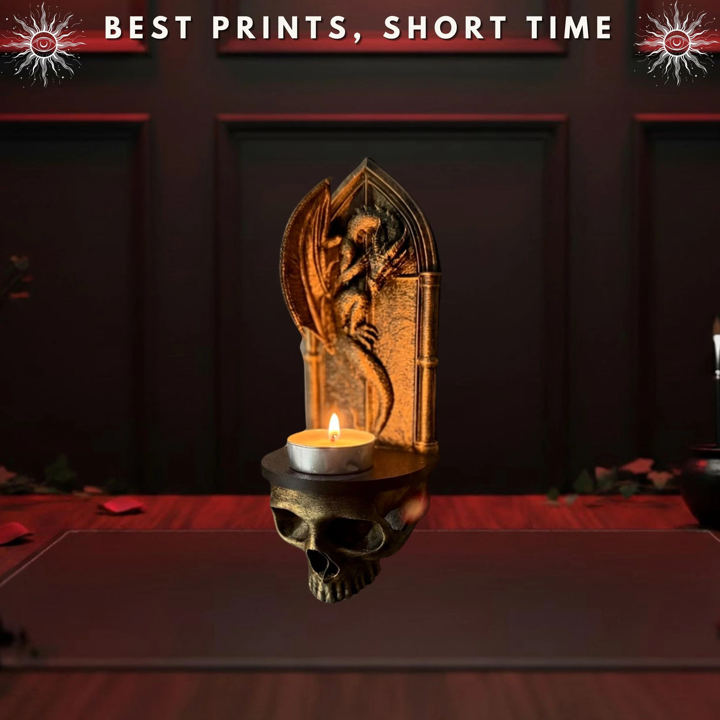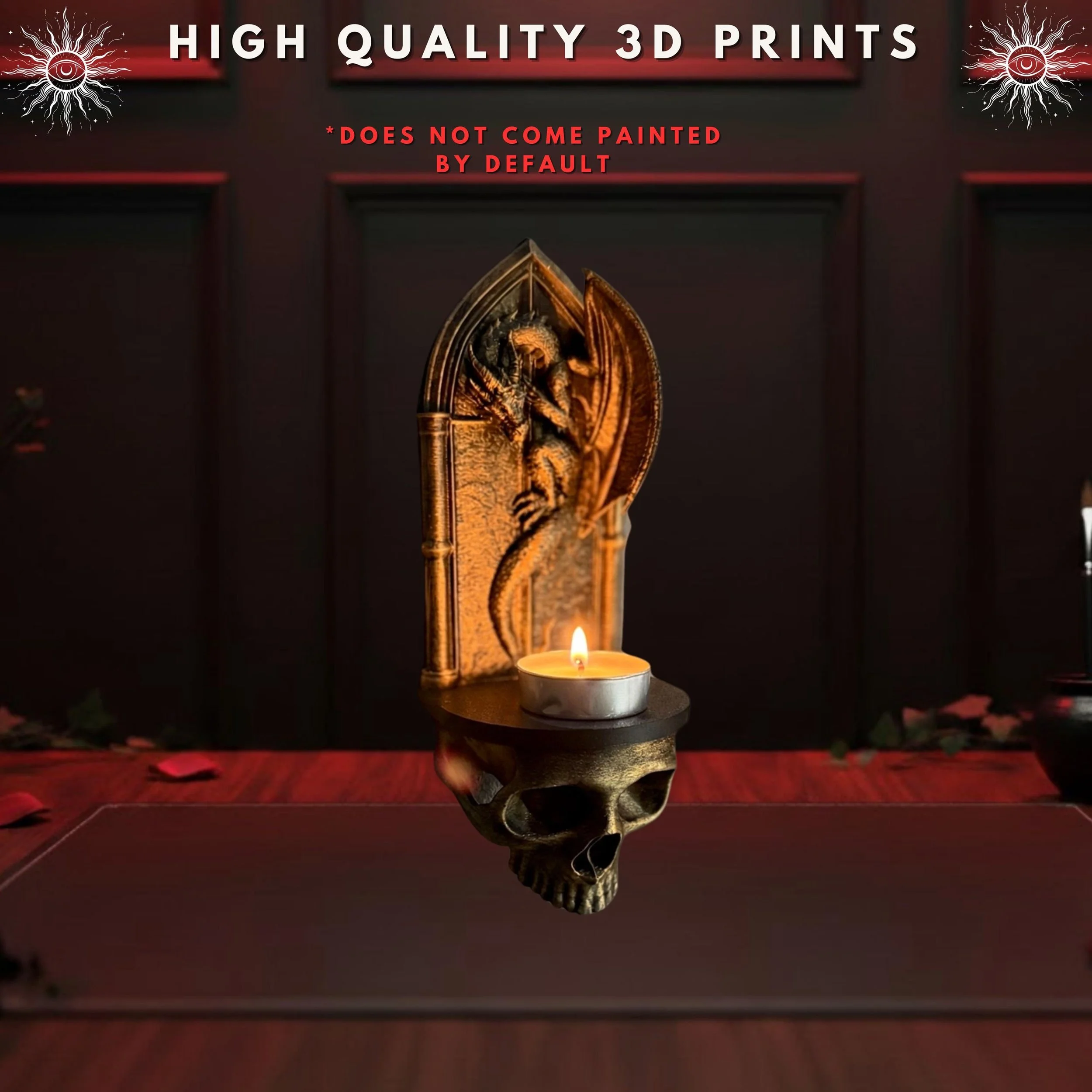 Elevate your sacred treasures with the stunning Skull and Dragon Wall Shelf. Designed by the Hooper Family, this intricate piece of 3D-printed art is the ultimate statement for fans of high fantasy, medieval history, and gothic aesthetics.
