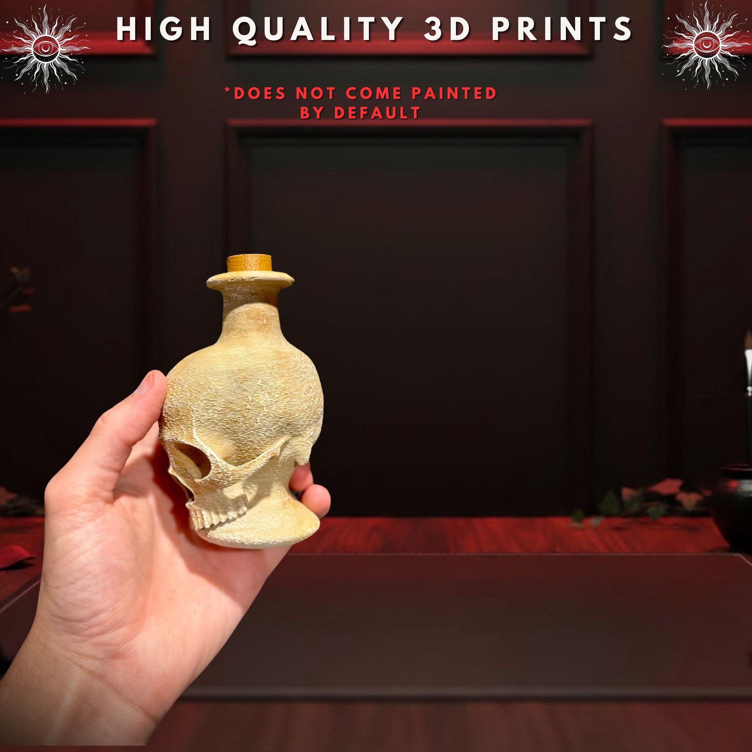 Skull Potion Bottle | Gothic Apothecary Decor | Witchy Jar | 3D Printed