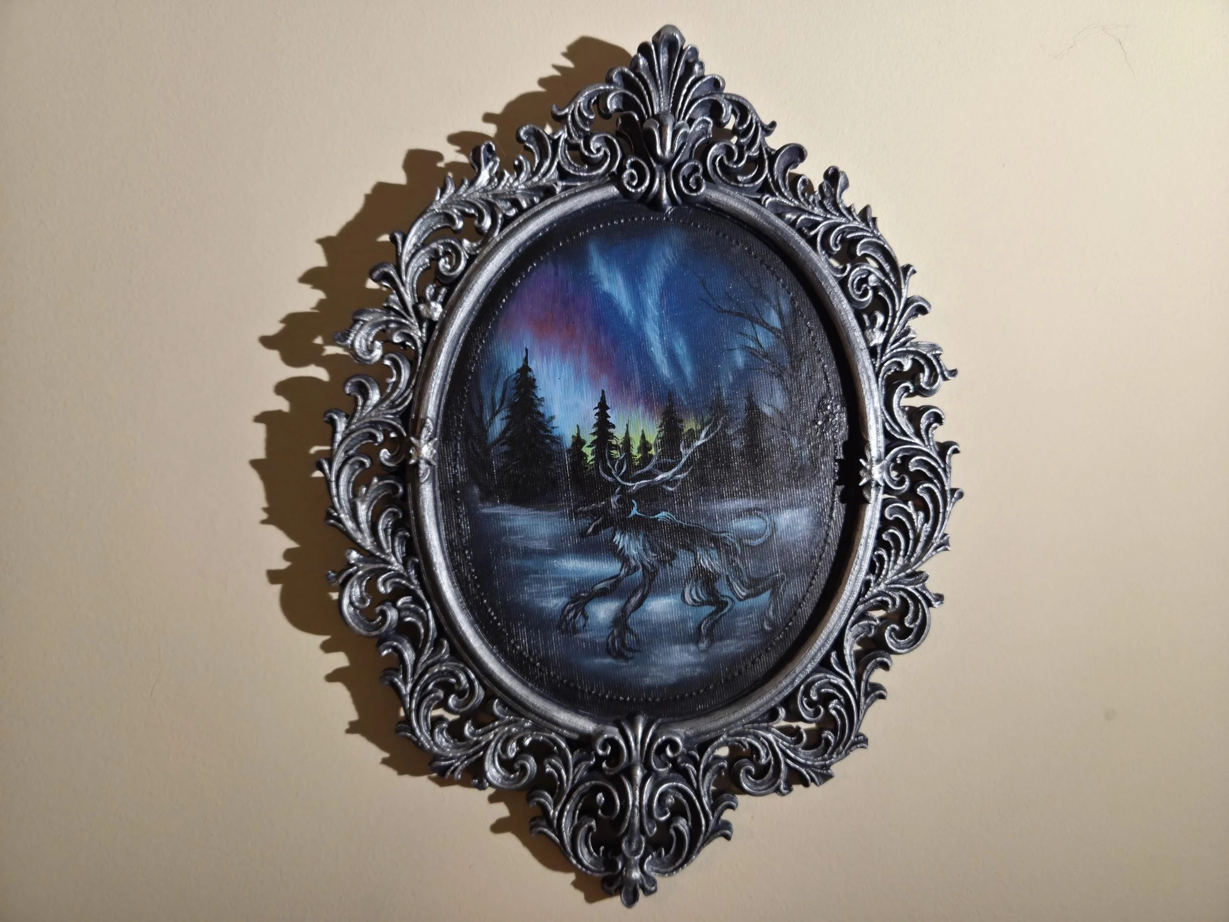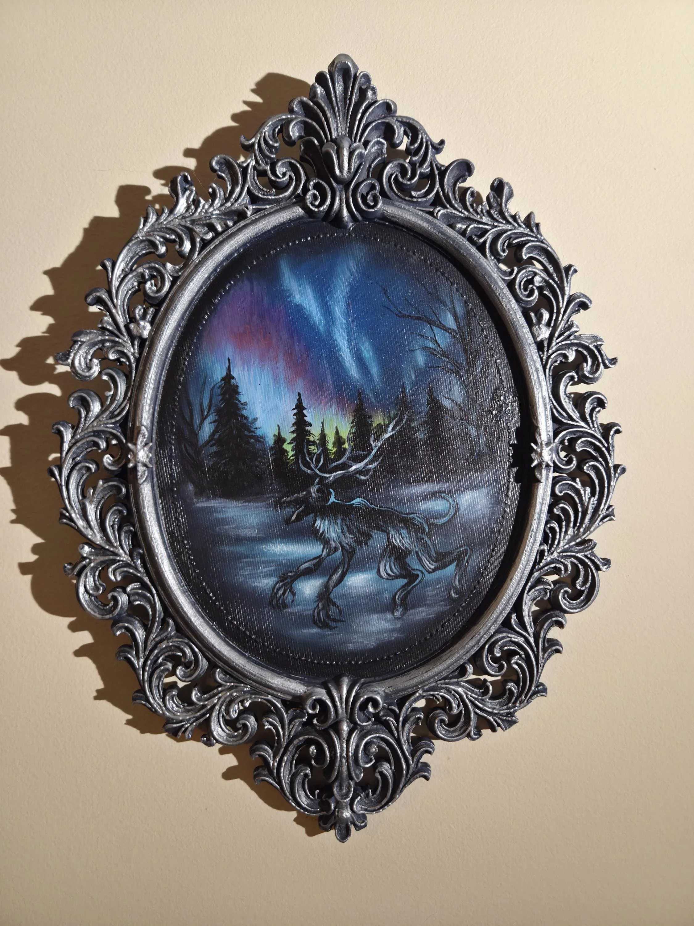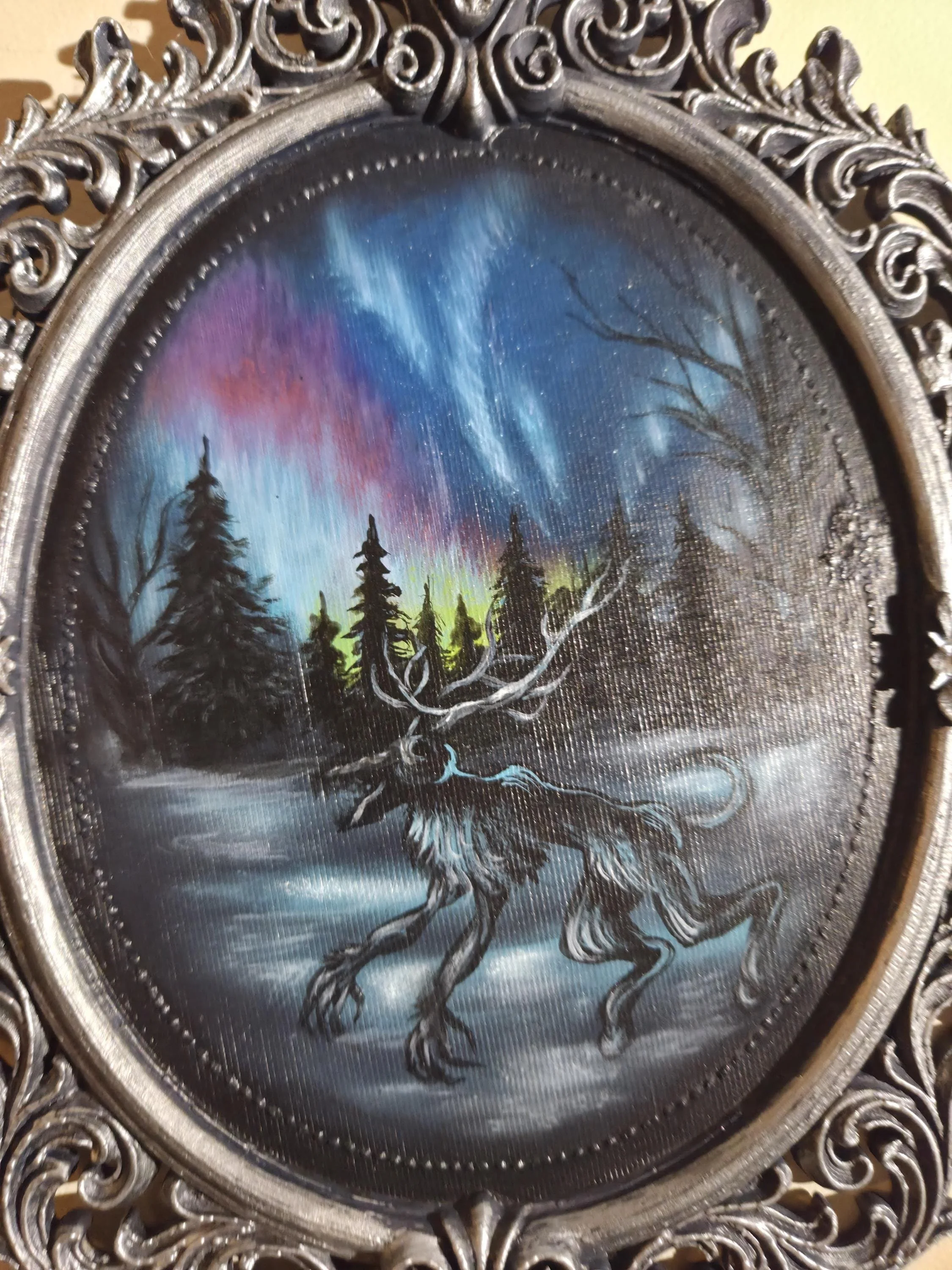The Wendigo & Aurora Borealis - Original Painting in 3D Printed Gothic Frame - One of A Kind