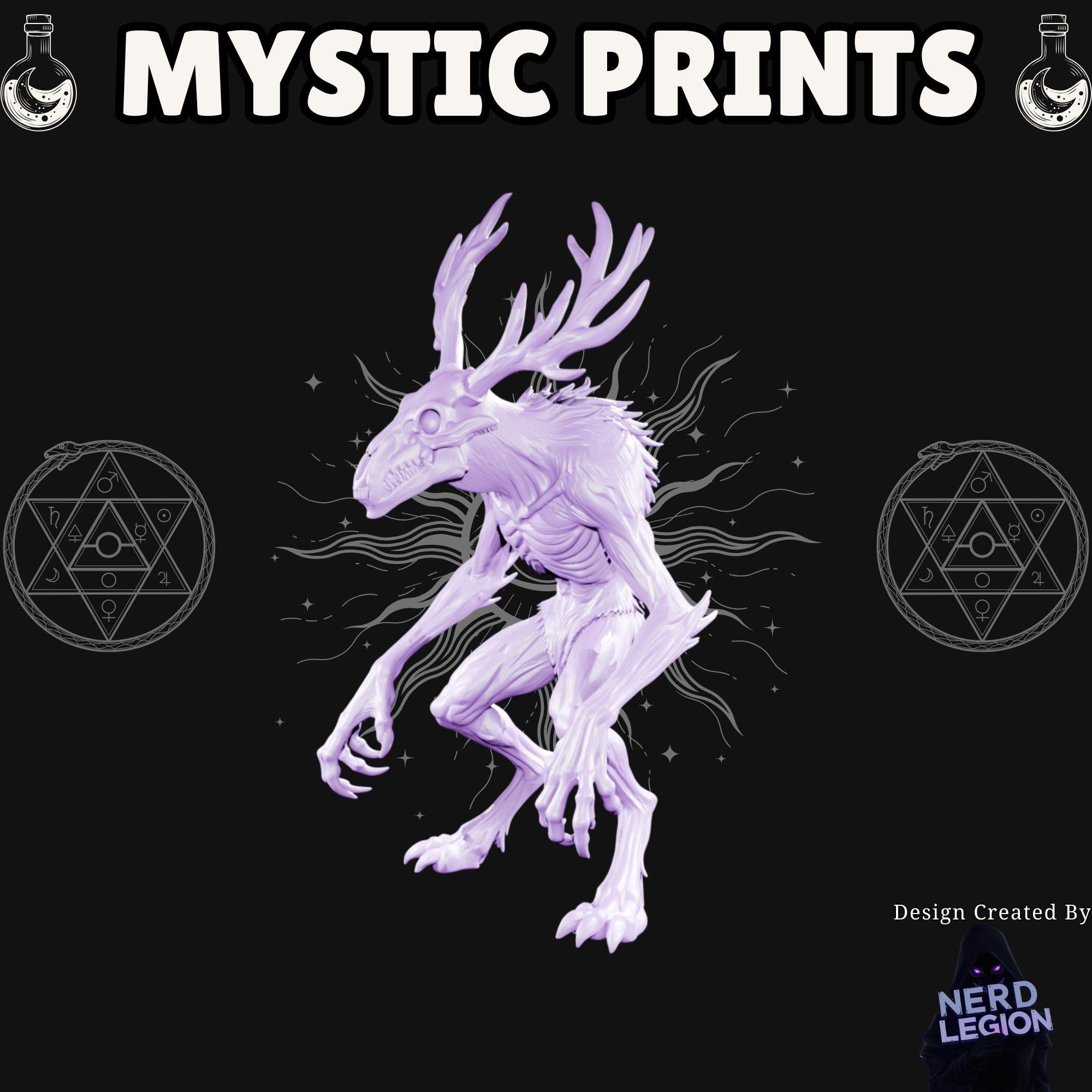 The sculpt captures the gaunt, ravenous nature of the legend, featuring a haunting deer-skull head and elongated, predatory claws. Optimized specifically for high-resolution resin printing, this model ensures that the intricate textures of the fur and bone print with terrifyingly sharp detail. Whether your party is trekking through a cursed forest or a haunted mountain pass, this Wendigo will keep them on their toes.